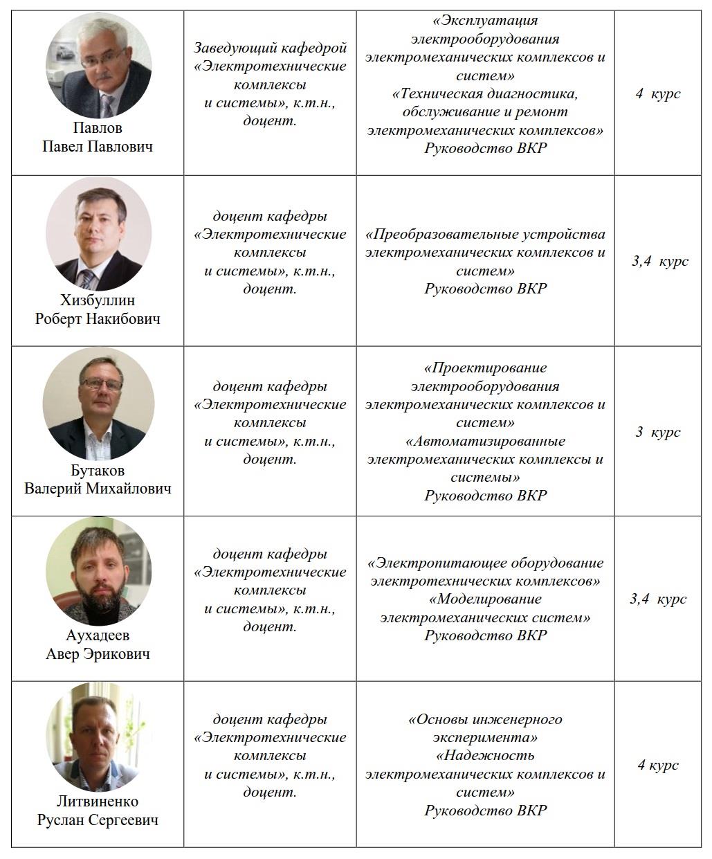| Руководитель магистерской программы: Павлов Павел Павлович, зав. кафедрой «Электротехнические комплексы и системы», кандидат технических наук, доцент. |