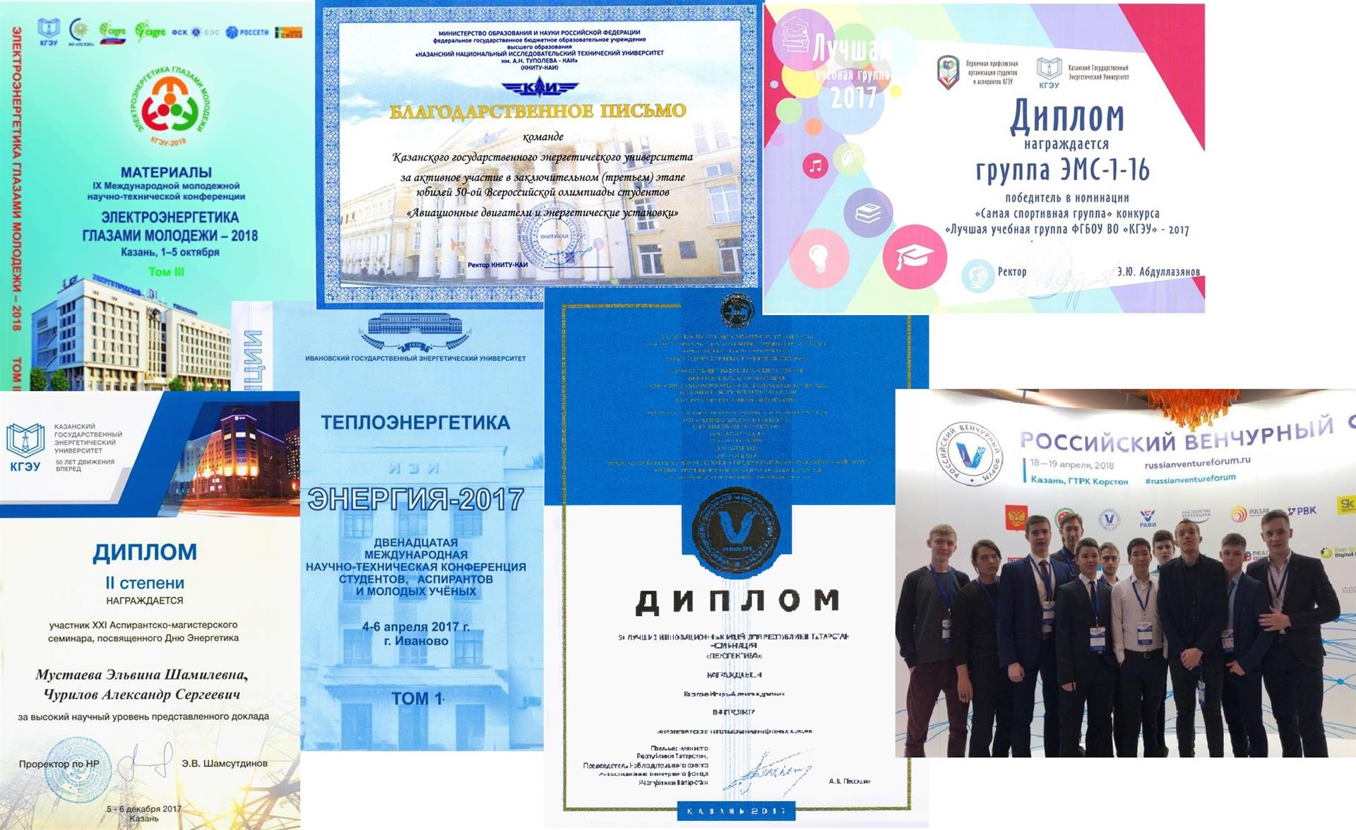 Обучающиеся под руководством научно-педагогических работников кафедры «Энергетическое машиностроение» принимают участие в ежегодном республиканском конкурсе «Пятьдесят лучших инновационных идей», во всероссийских студенческих олимпиадах «Авиационные двигатели и энергетические установки» (КНИТУ-КАИ), по теоретической и прикладной механике (КГЭУ).