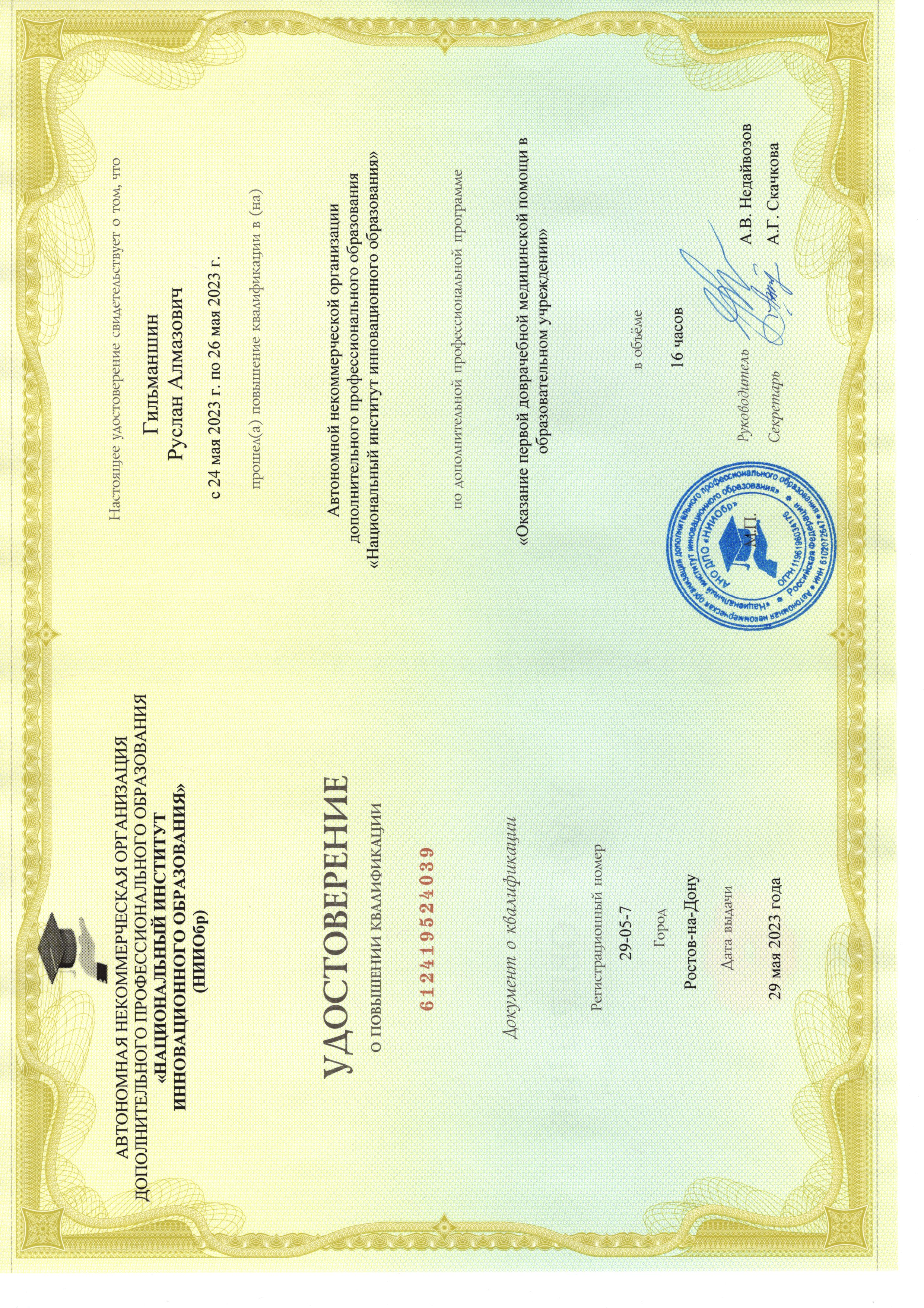 | АНО ДПО «Национальный институт инновационного образования» |