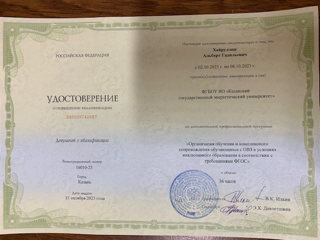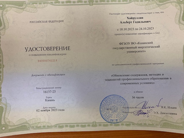" Кадры решают все" Хайруллин А Г, Сальникова О.В. статья ВАК в журнале " Вестник педагогических наук" №6 (от 28.06.24г) стр 55-57 |