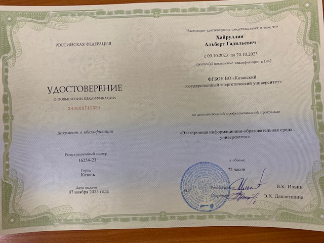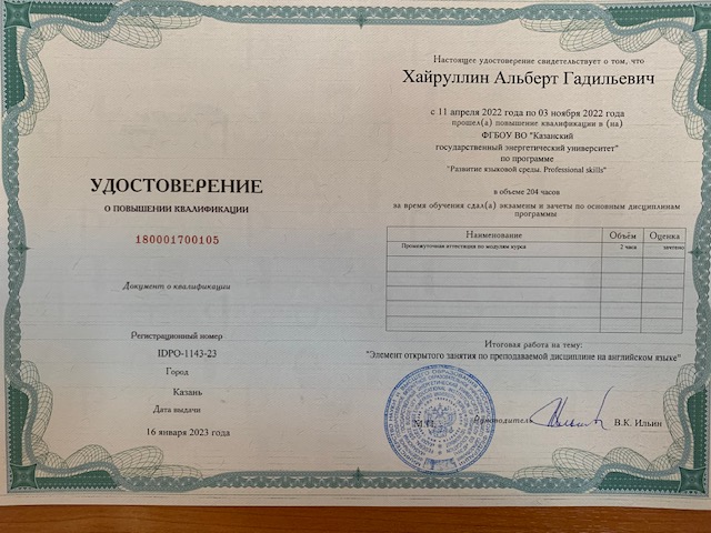 «Современная система педагогического образования в высшем учебном заведении» Хайруллин А.Г. Беляков К.М. статья на 8 Международной научно-исследовательской конференции 17 мая 2019 г город Пенза статья в сборнике С.54-58 |