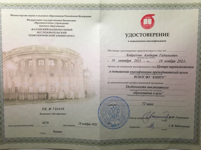 «Педагогическое образование в высшем учебном заведении» Хайруллин А.Г. Ильин В.А. статья на Международной научно-исследовательской конференци 5 мая 2019 г город Пенза С. 67-69 |