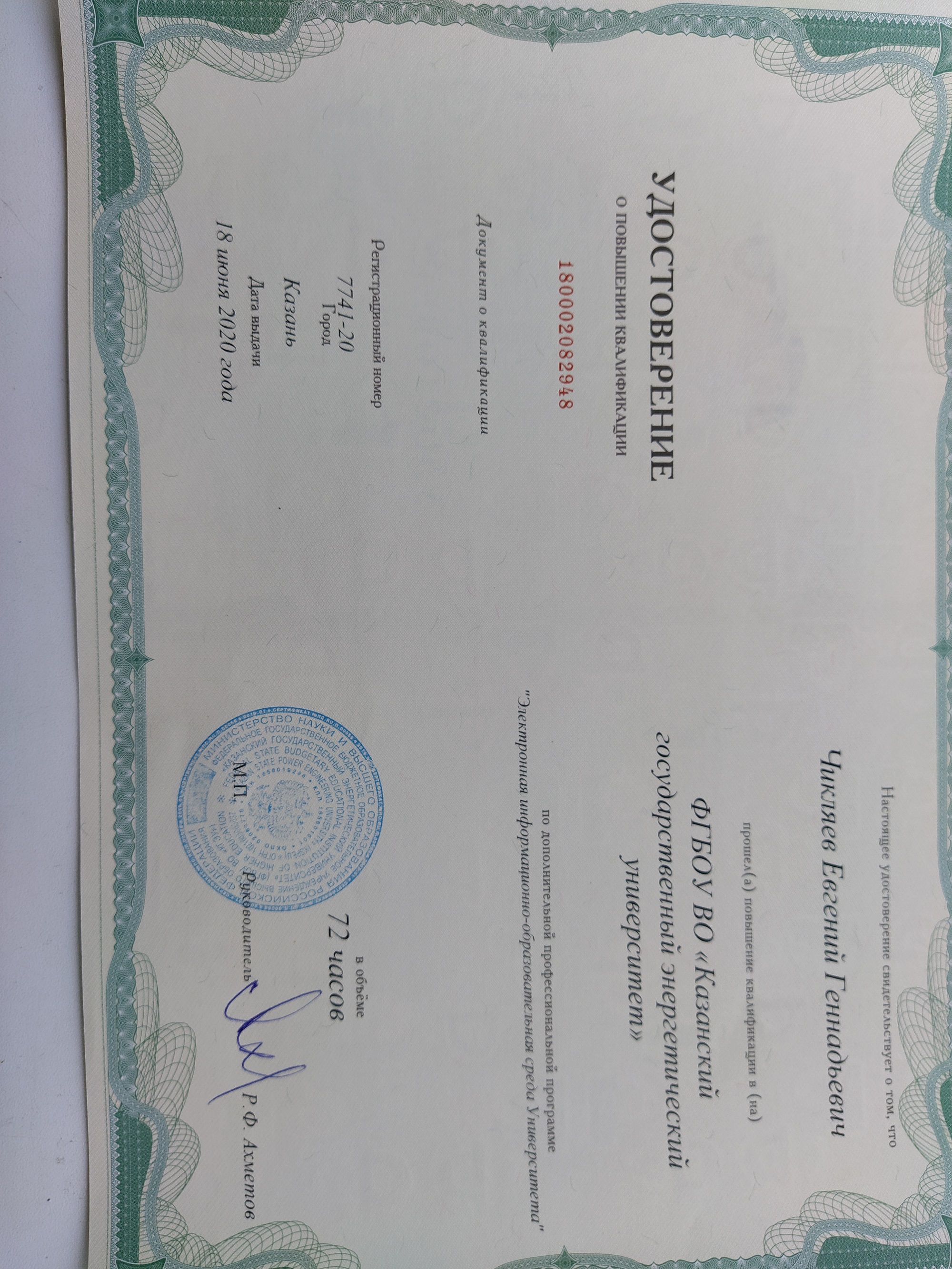 ФБГОУ ВО " Казанский государственный энергетический университет" Электронная информационно-образовательная среда Университета 180002082948 18.06.2020 72