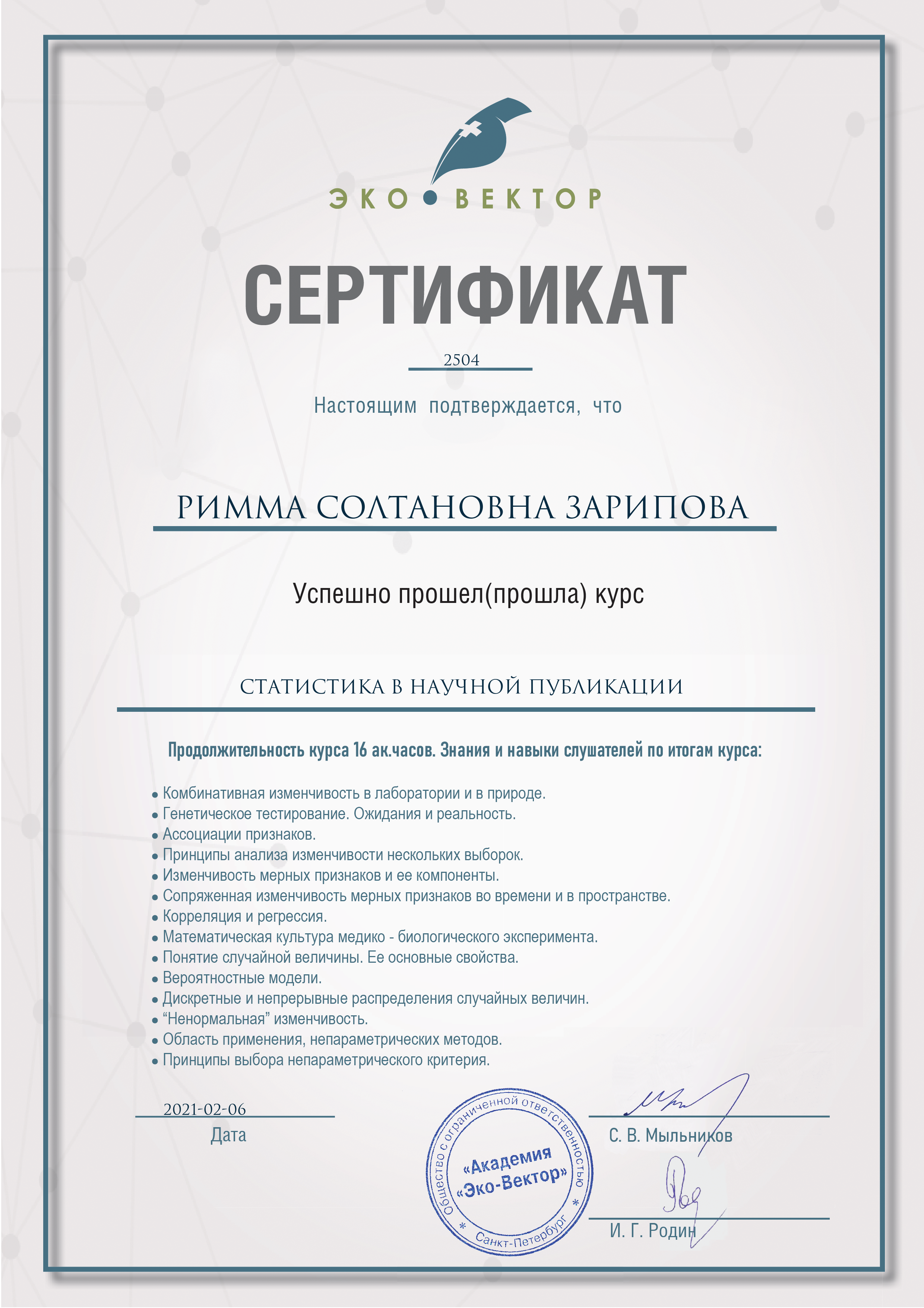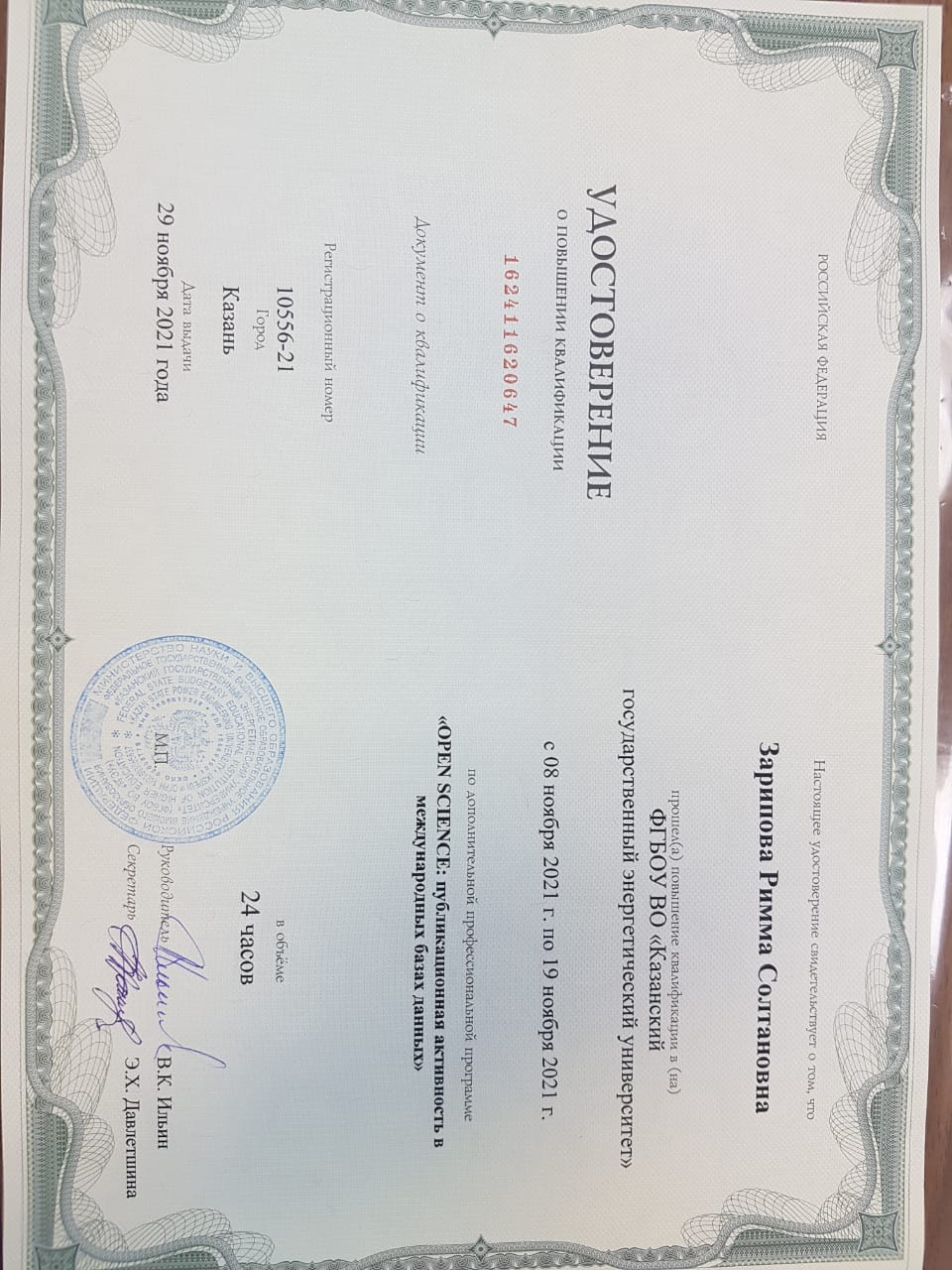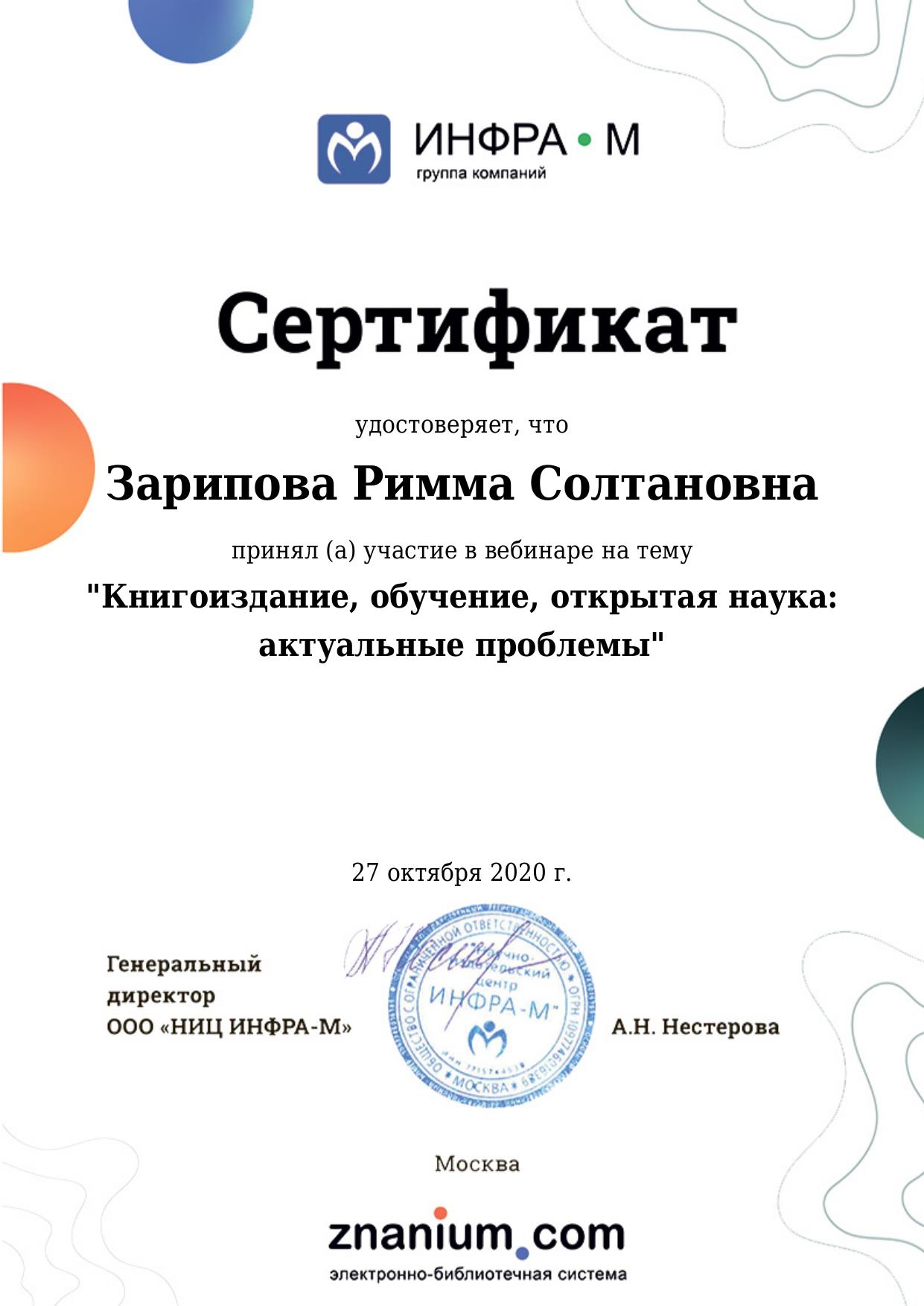 SCOPUS, Web Of Science: R. Zaripova, А. Porunov, R.Zinurova, R.Galyamov, G.Stepanova. The Role of Practice-Oriented Education in the Development of the Country’s Economy // New Silk Road: Business Cooperation and Prospective of Economic Development (NSRBCPED 2019), Advances in Economics, Business and Management Research, volume 131, 2019, P.663 |