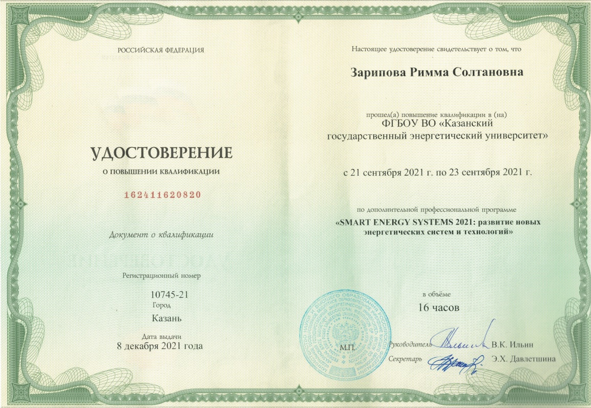 SCOPUS, Web Of Science: L V Plotnikova, R R Giniyatov, S Y Sitnikov, M A Fedorov and R S Zaripova. Perfection of the methodology for developing industrial secondary energy generation systems // IOP Conference Series: Earth and Environmental Science, Volume 288, 2019, P. 012069 |