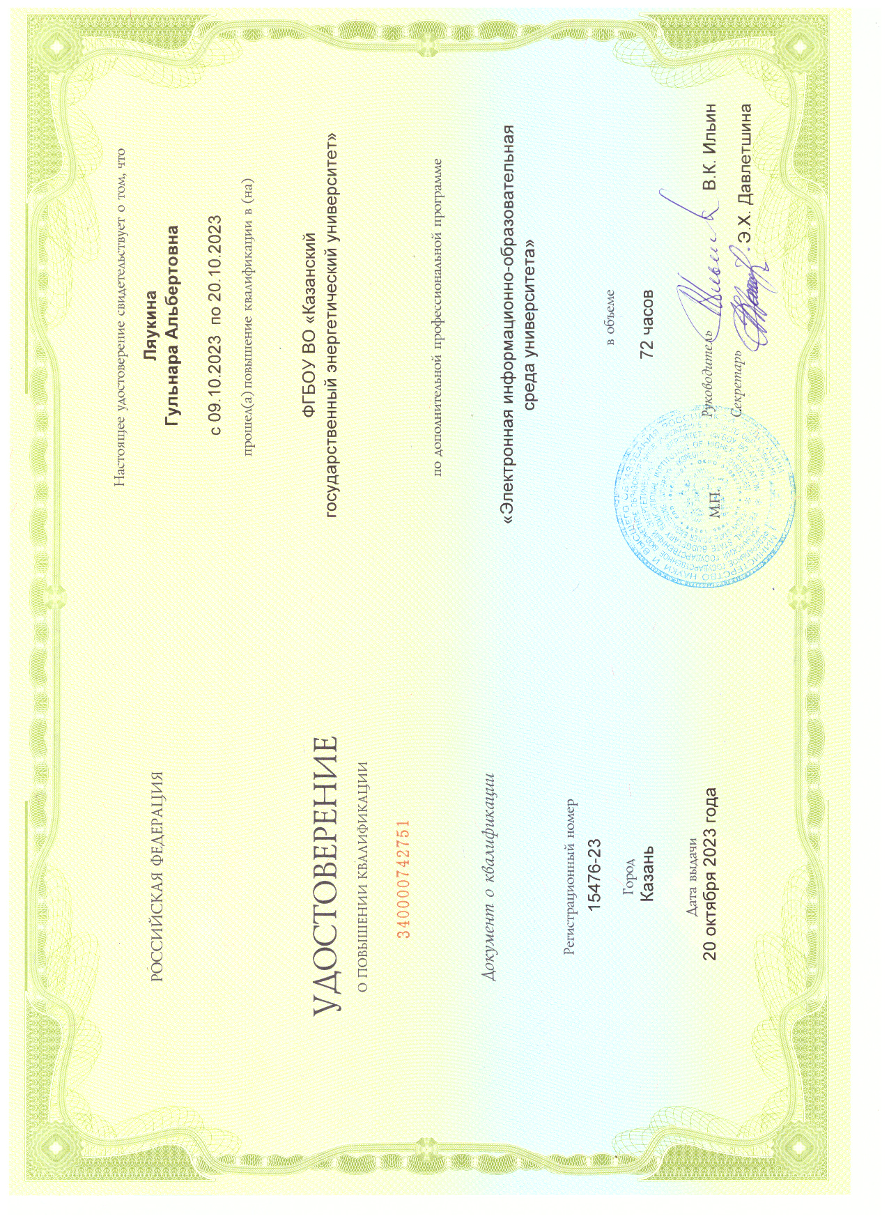 Использование информационных технологий в процессе подготовки аспирантов в КГЭУ/Ляукина Г.А., Камалеева Л.С./В сборнике: Тинчуринские чтения - 2022 "Энергетика и цифровая трансформация". Сборник статей по материалам Международной молодежной научной конференции. В 3-х томах. Под общей редакцией Э.Ю. Абдуллазянова. Казань, 2022. С. 339-342. |