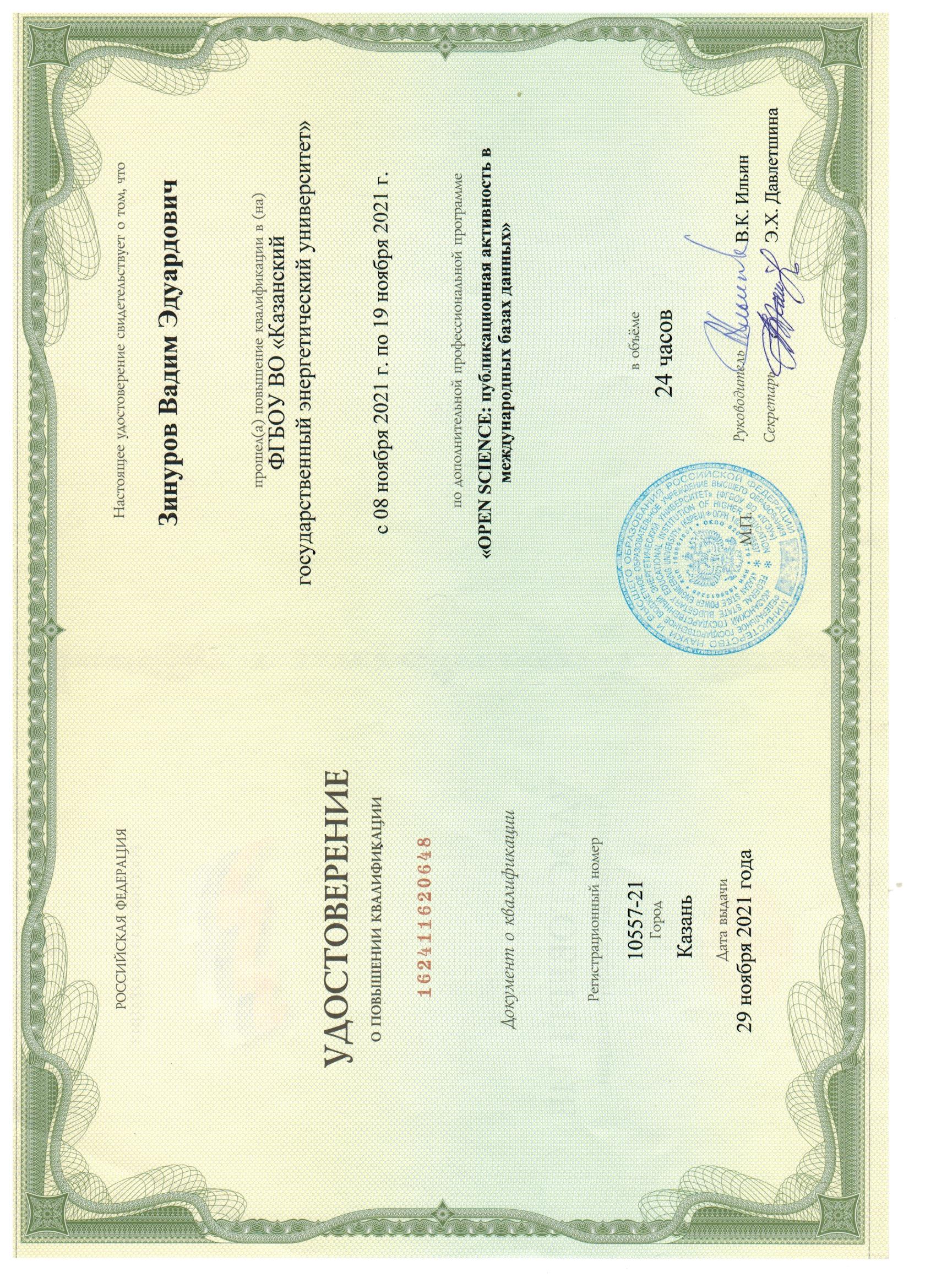 Zinurov, V. E. The experimental study of increasing the efficiency of emulsion separation / V. E. Zinurov, I. I. Sharipov, O. S. Dmitrieva, I. N. Madyshev // E3S Web of Conferences. - EDP Sciences. – 2020. – V. 157. – P. 06001. DOI: 10.1051/e3sconf/202015706001 (Key Trends in Transportation Innovation (KTTI-2019)) |