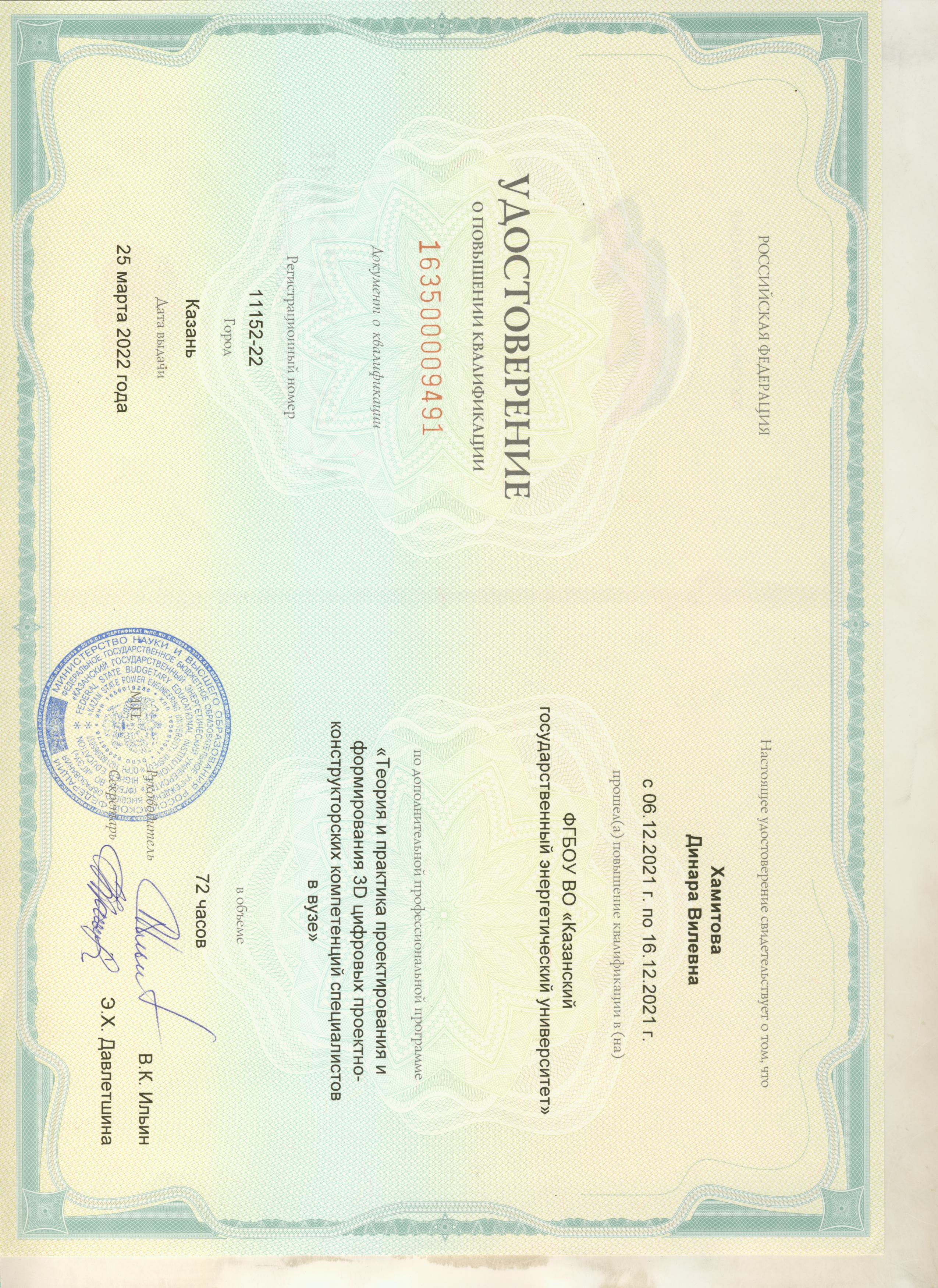 Хамитова Д.В. , Николаев К.В. Цифровые образовательные технологии в инженерном геометрическом моделировании // Приборостроение и автоматизированный электропривод в топливно-энергетическом комплексе и жилищно-коммунальном хозяйстве: материалы VI Национальной научно-практической конференции (Казань, 10-11 декабря 2020 г.): в 2 т./ редкол.: Э.Ю. Абдуллазянов (гл.редактор) и др. Казань: Казан. гос. энерг. ун-т, 2020. Т. 2. – С. 158-160. |