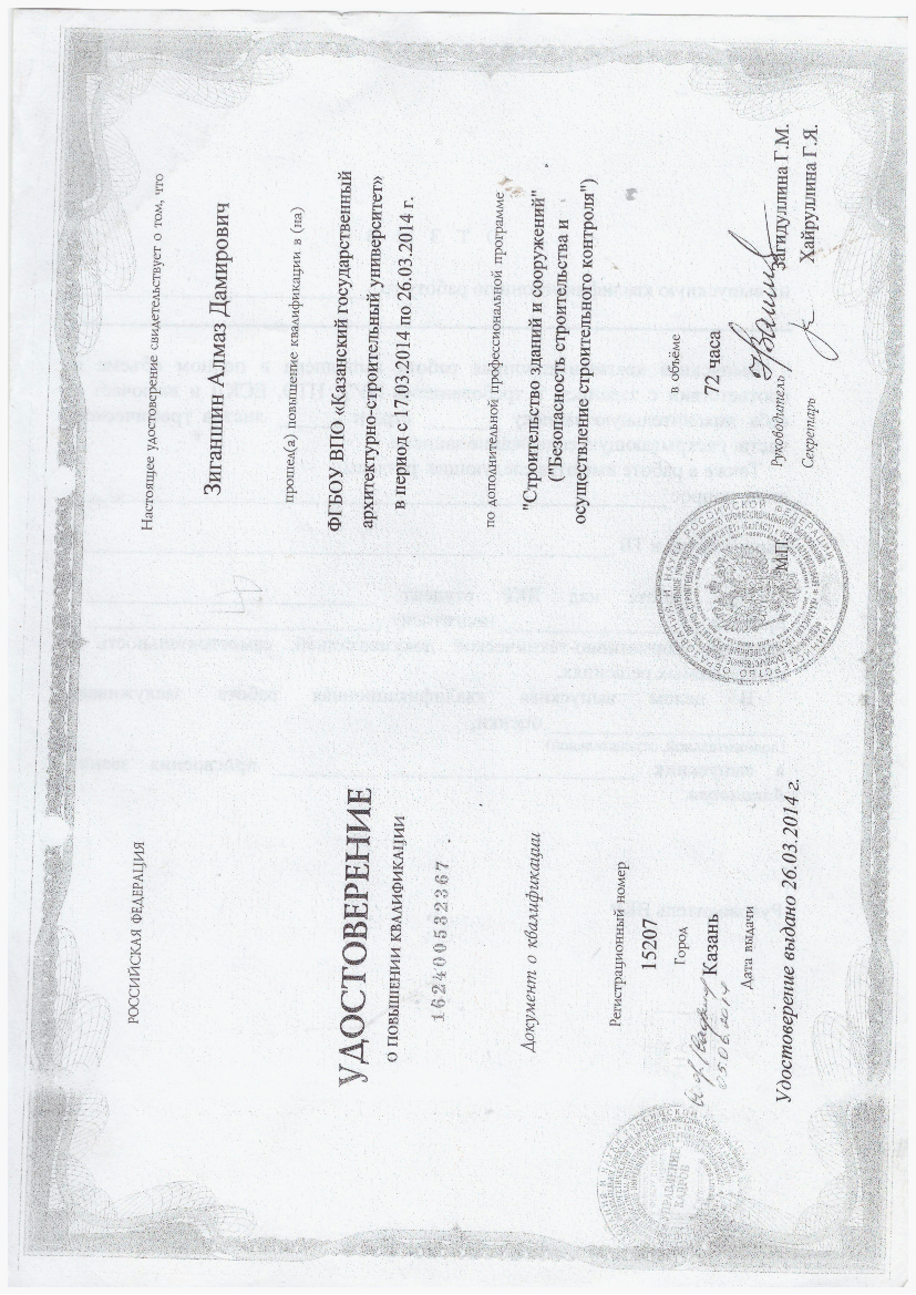 ФГБОУ ВПО "Казанский государственный архитектурно-строительный университет" Удостоверение 15207 26.03.2014 72