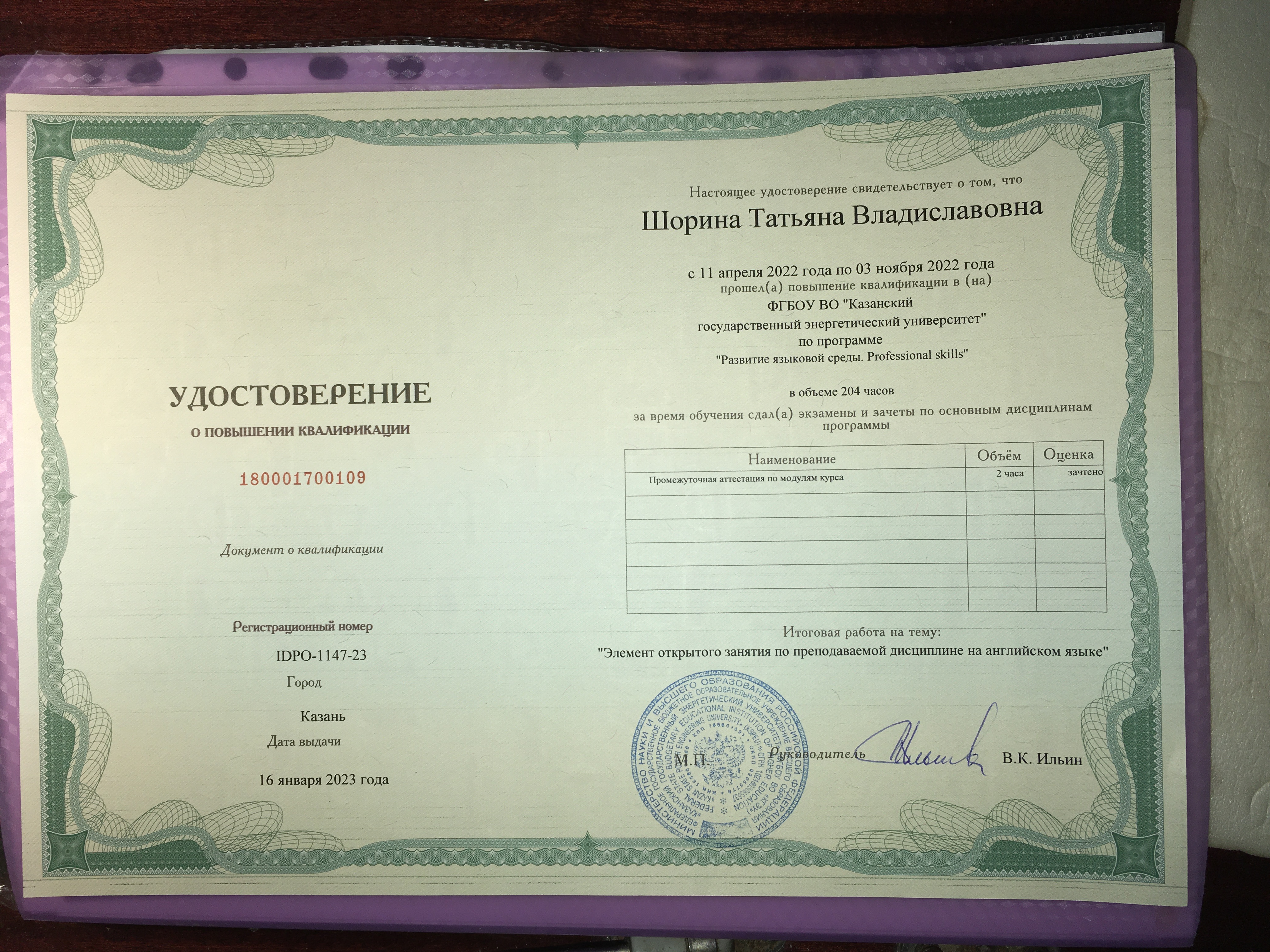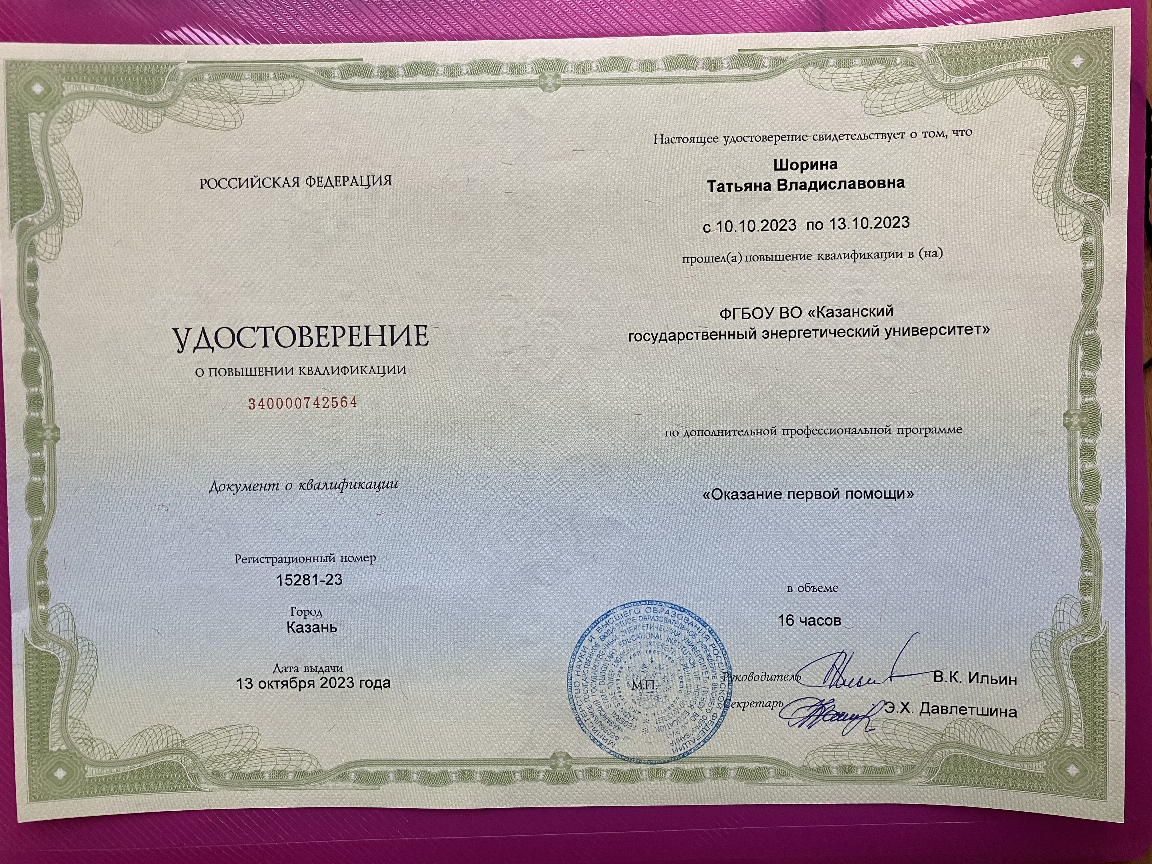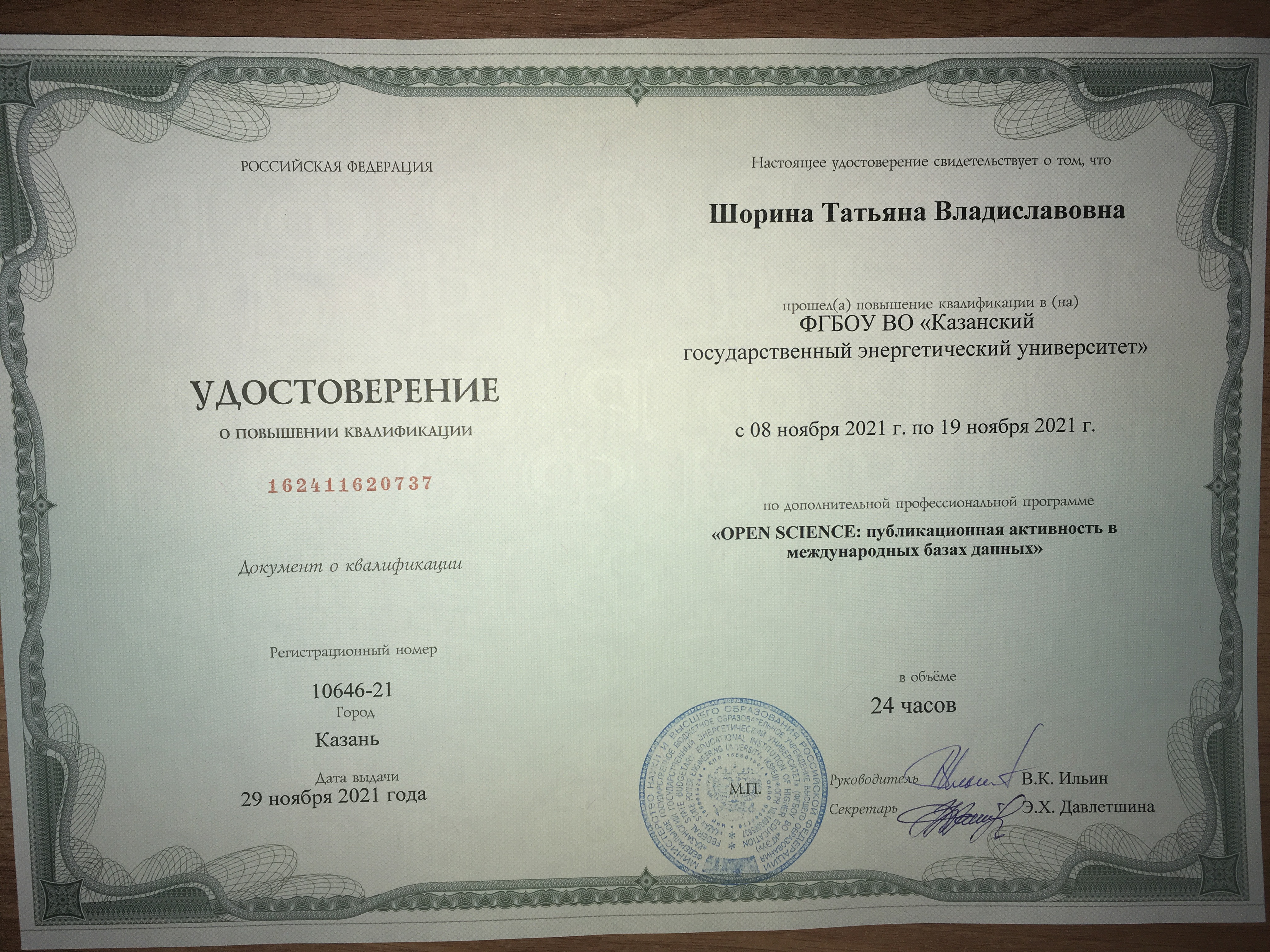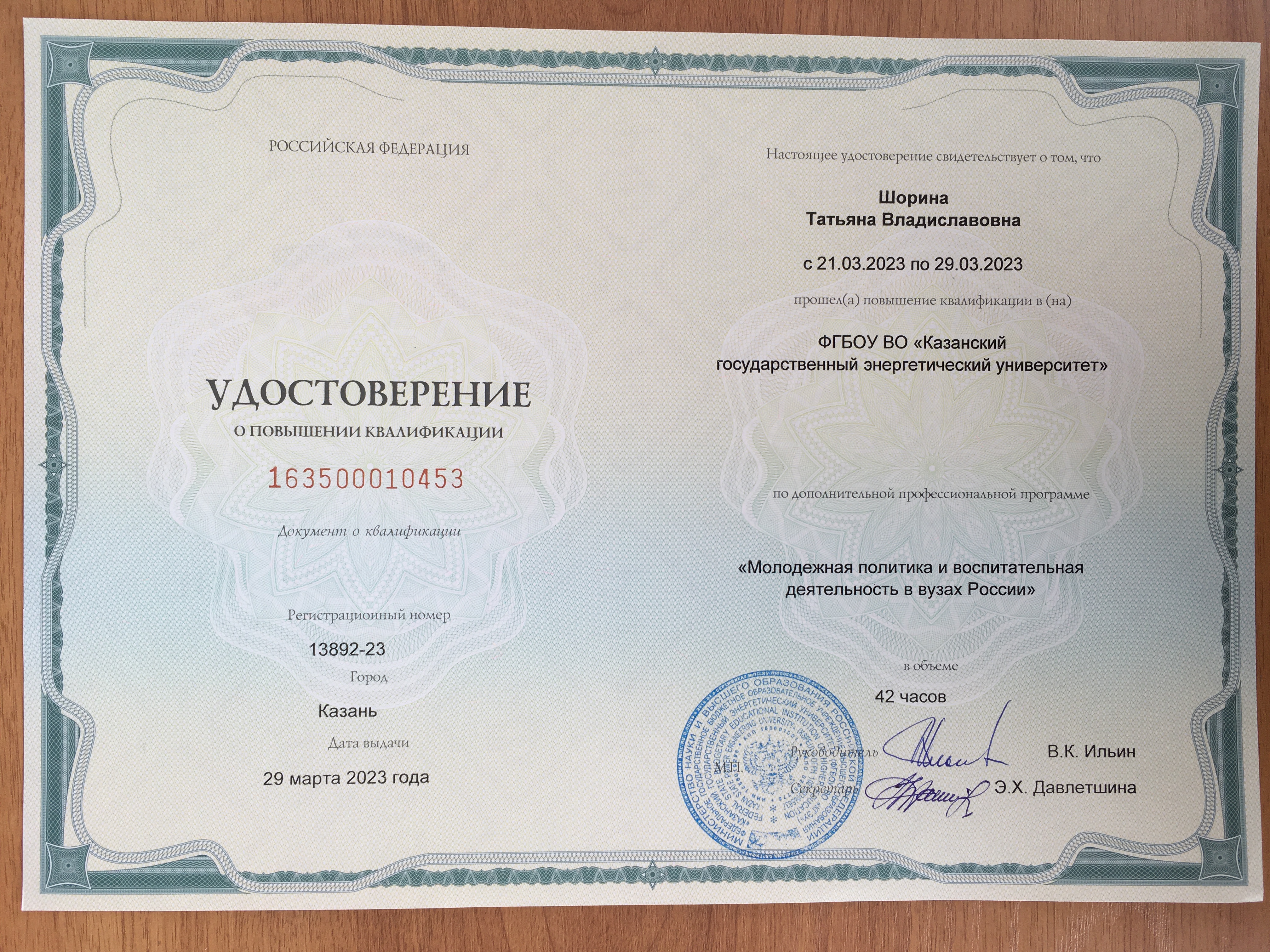 2016-2018 – ФГАОУ ВО «Казанский (Приволжский) федеральный университет», специалист по учебно-методической работе.