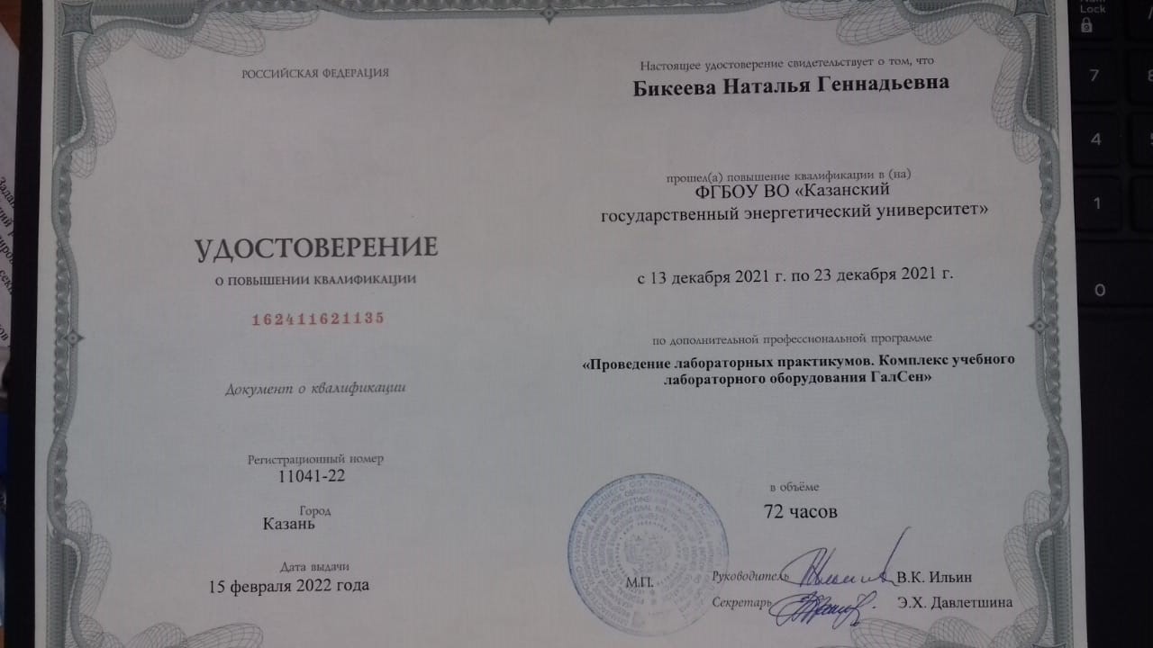ФГБОУ ВО "КГЭУ" Дополнительная профессиональная программа "Проведение лабораторных практикумов. Комплекс учебного лабораторного оборудования ГалСен" 162411621135 15.02.2022 72