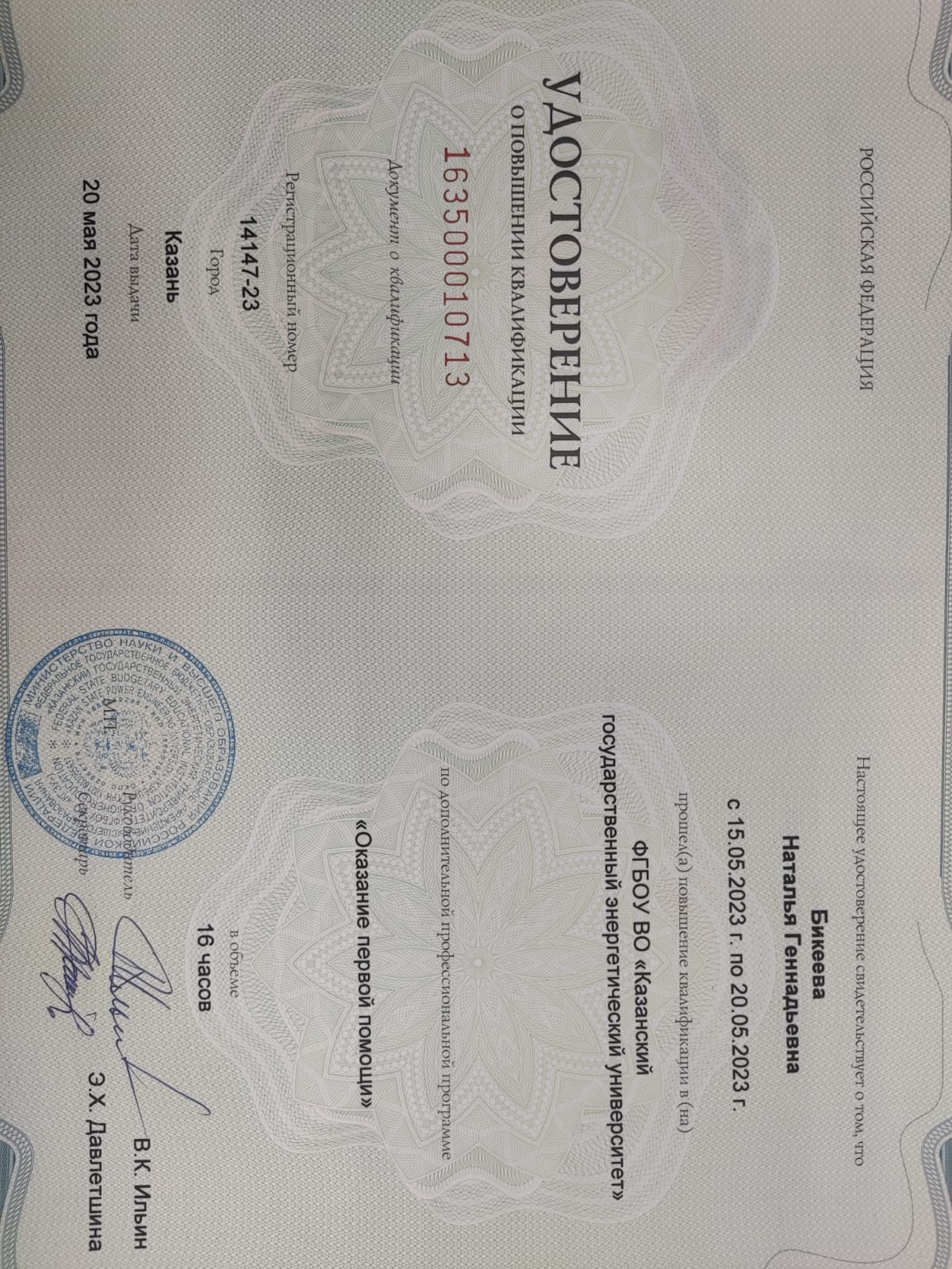 ФГБОУ ВО КГЭУ Дополнительная профессиональная программа "Оказание первой помощи" 163500010713 20.05.2023 16