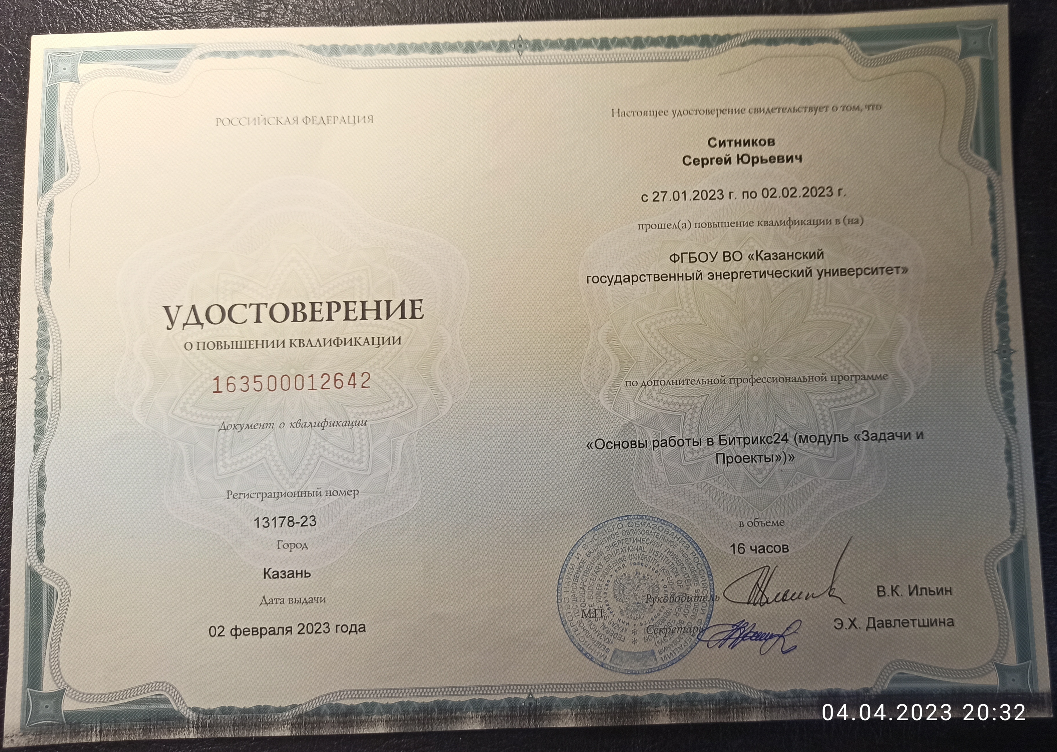 С 2000 по 2009 руководил информатизацией в Казанском государственном энергетическом университете – в должности начальника Информационного центра (число сотрудников – 18 чел.), затем директора Центра информационных технологий (в ранге проректора). За это время была создана современная локальная сеть КГЭУ и существенно обновлен парк компьютеров, а поточные аудитории оснащены проекционной аппаратурой. По совместительству работал доцентом кафедры ИИУС.