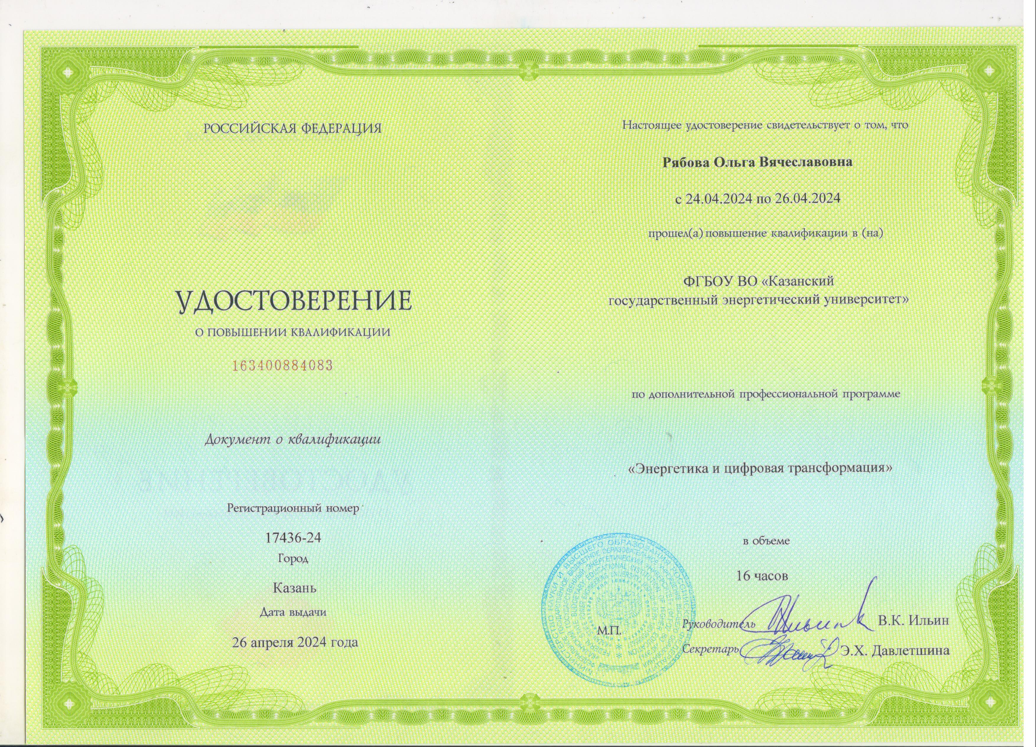 ФГБОУ ВО КГЭУ Энергетика и цифровая трансформация 163400884083 26.04.2024 16