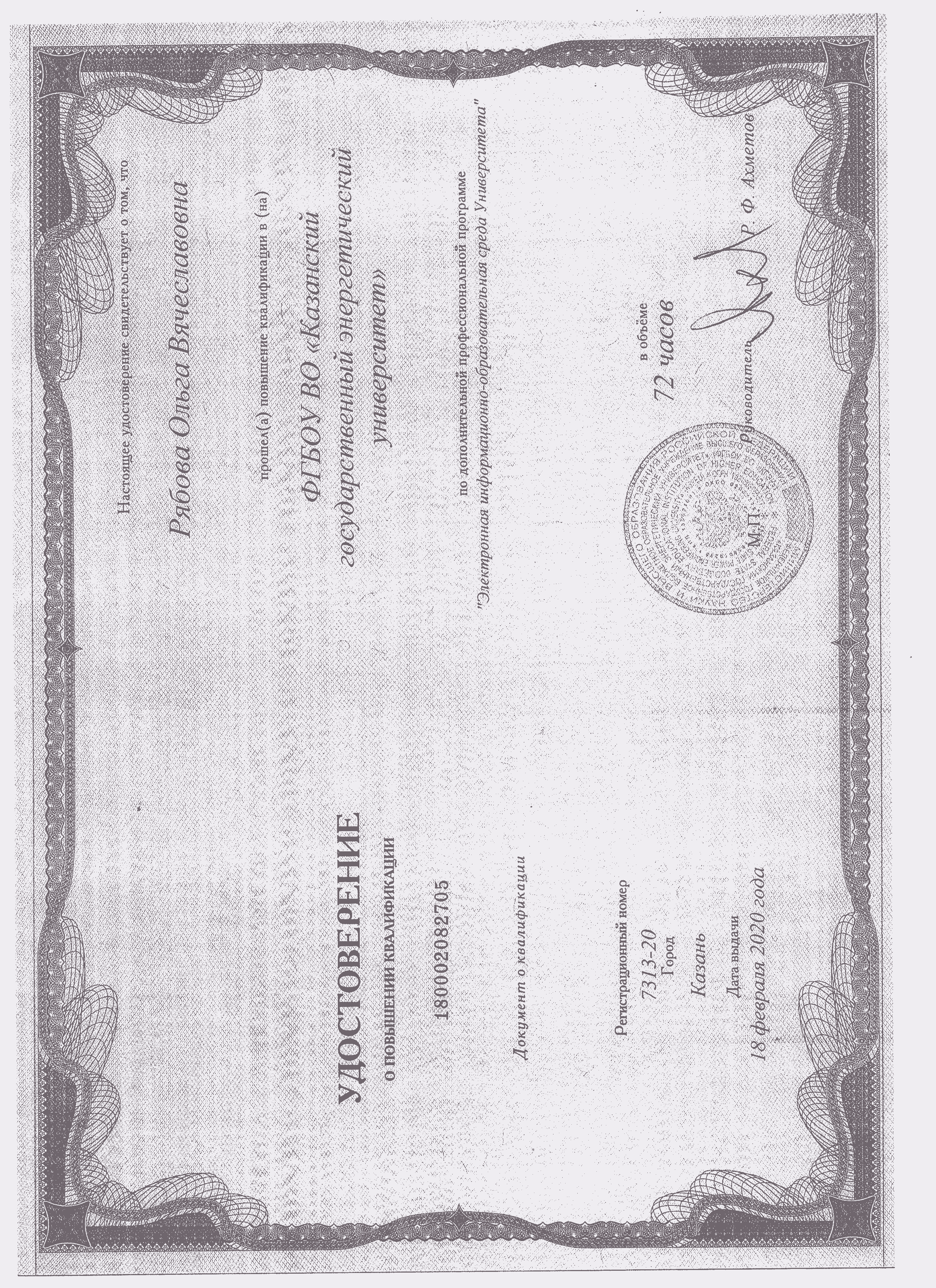 ФГБОУ ВО "КГЭУ" Электронная информационно-образовательная среда Университета 7313-20 01.02.2020 72