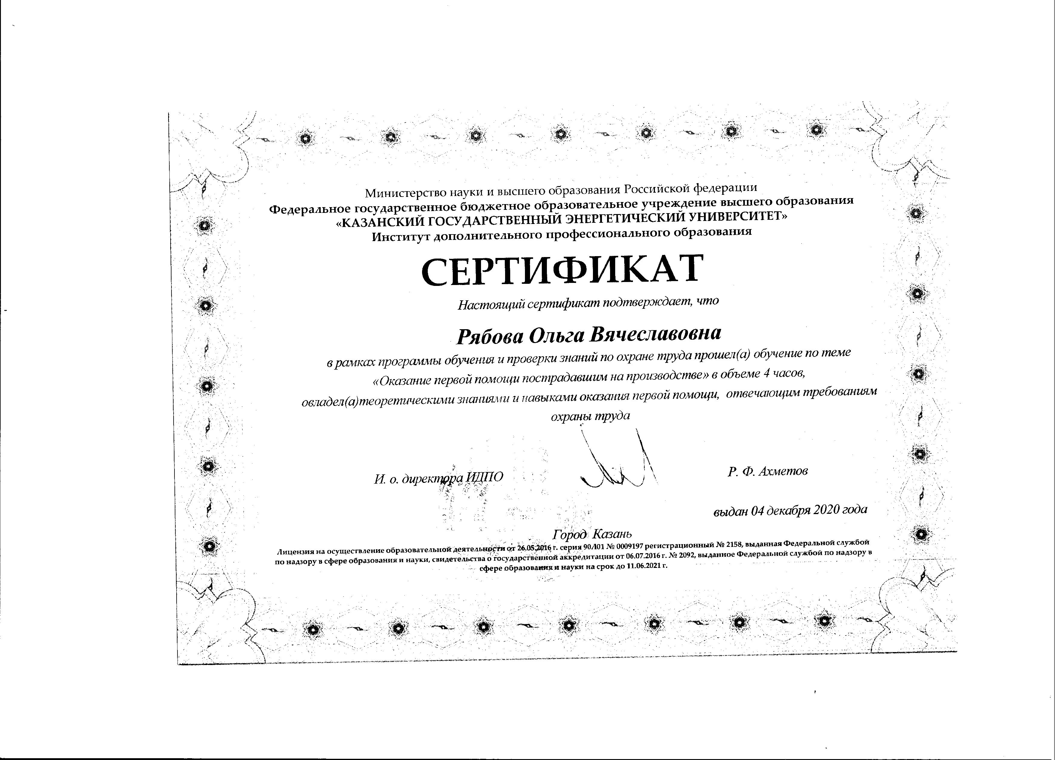 ФГБОУ ВО "КГЭУ" Программа обучения и проверки знаний по охране труда "Оказание первой помощи пострадавшим на производстве" - 04.12.2020 4