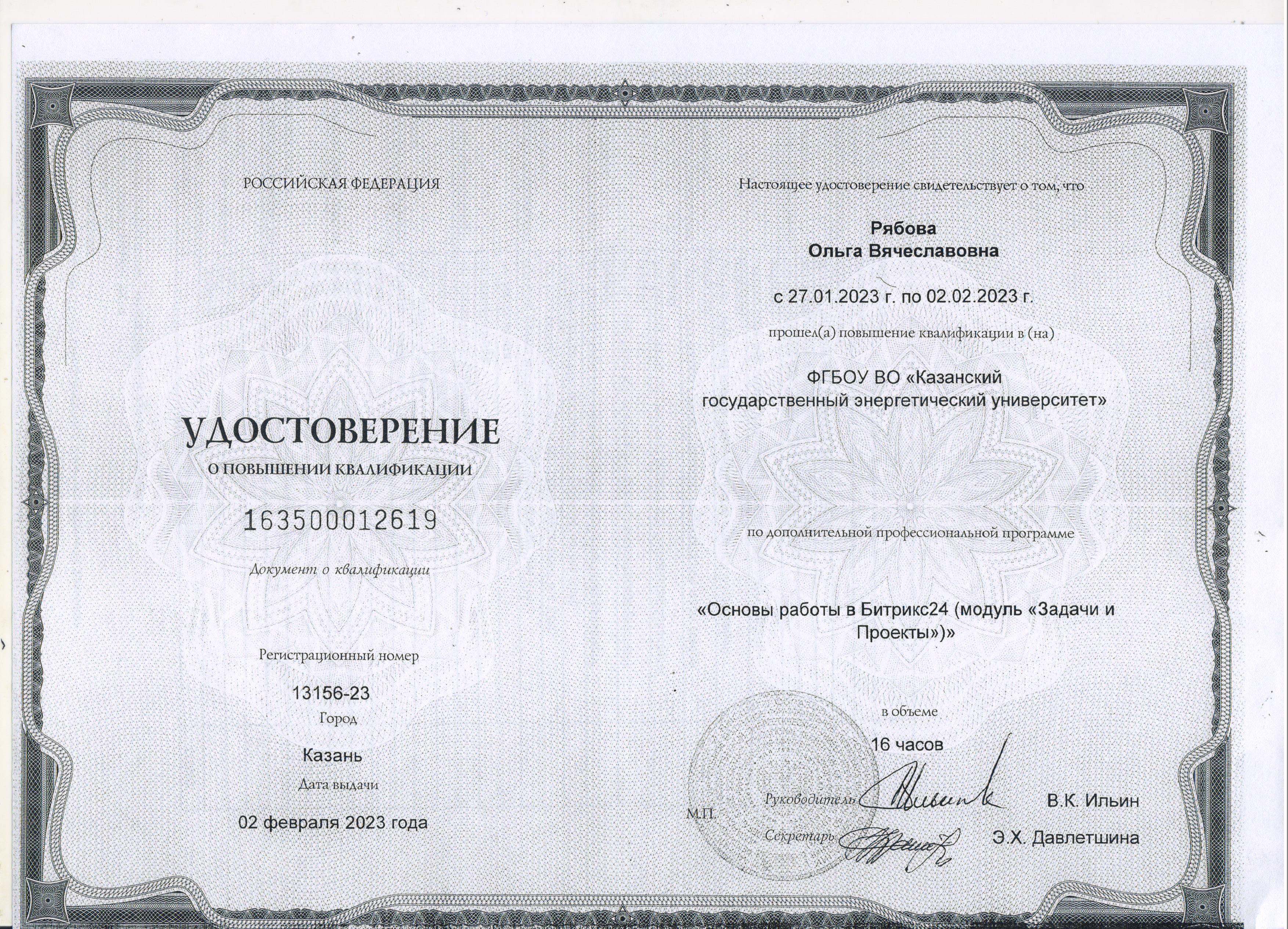 ФГБОУ ВО "КГЭУ" Основы работы в Битрикс24 (модуль "Задачи и проекты")" 163500012619 02.02.2023 16