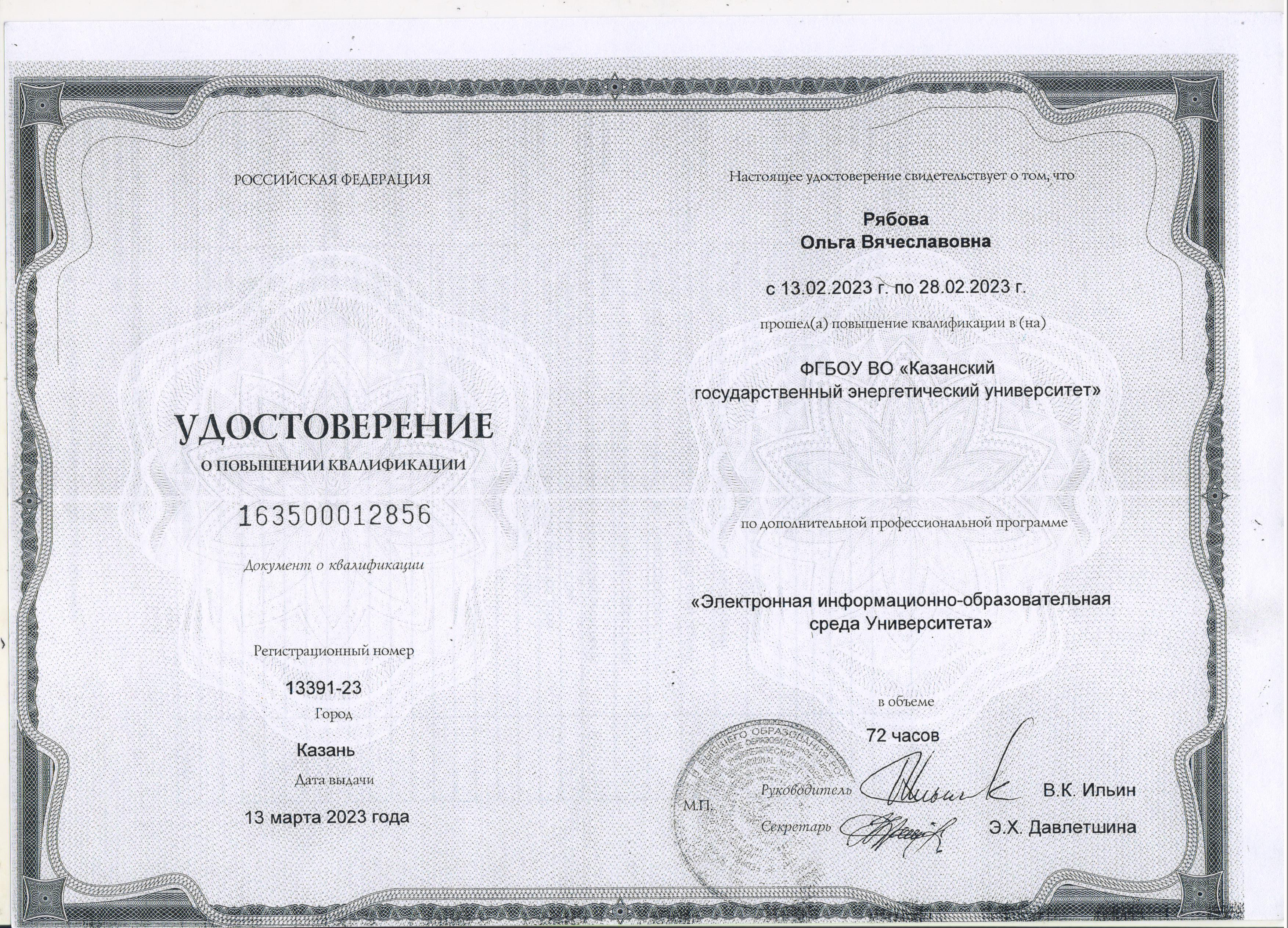 ФГБОУ ВО "КГЭУ" Электронная информационно-образовательная среда Университета" 163500012856 13.03.2023 72