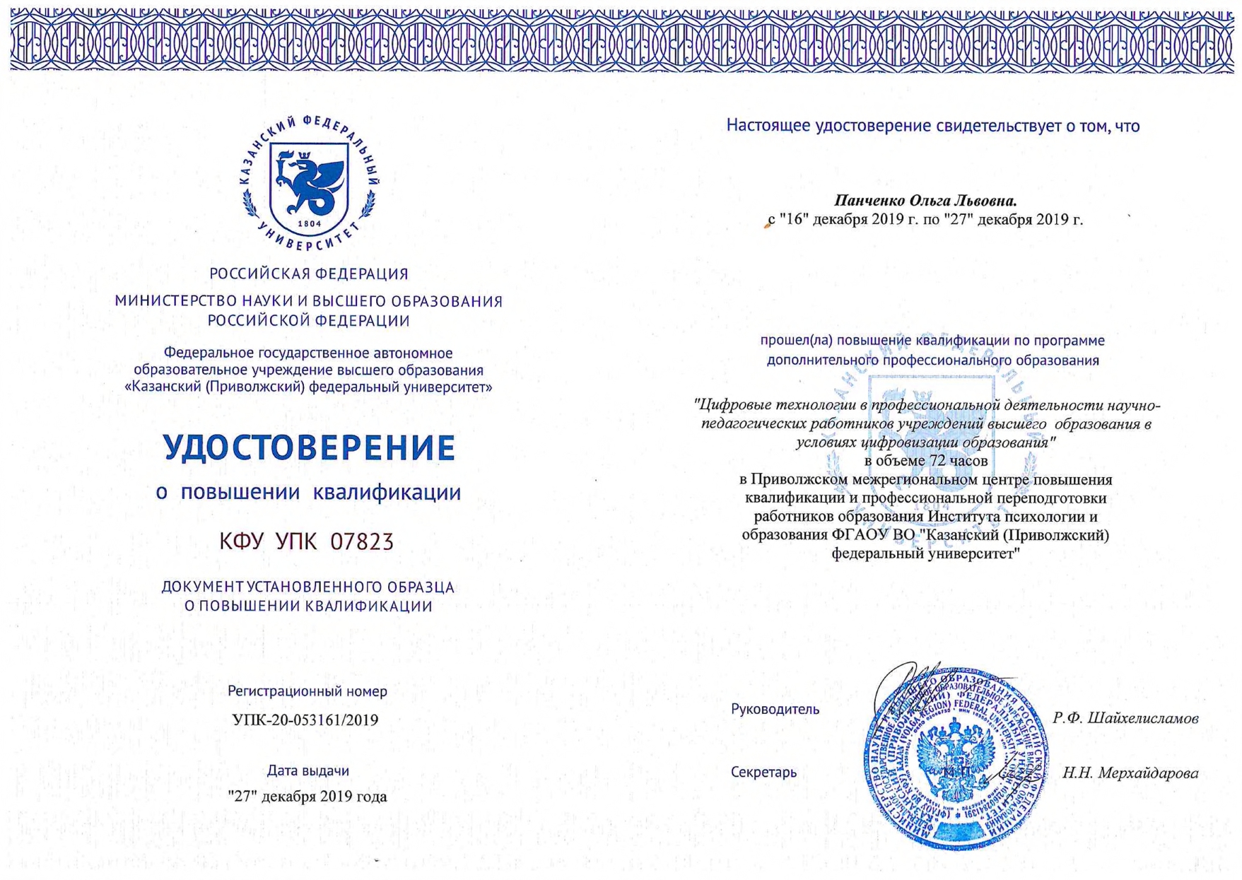 Khairutdinov R.R., Mukhametzyanova F.G., Fakhrutdinova A.V., Panchenko O.L., Bogovarova V.A. FORMING READINESS OF A MASTER’S STUDENT FOR SCIENTIFIC AND RESEARCH ACTIVITY. Teacher Education and Training. 2019. (публикация в журналах БД Scopus, Web of Science) |