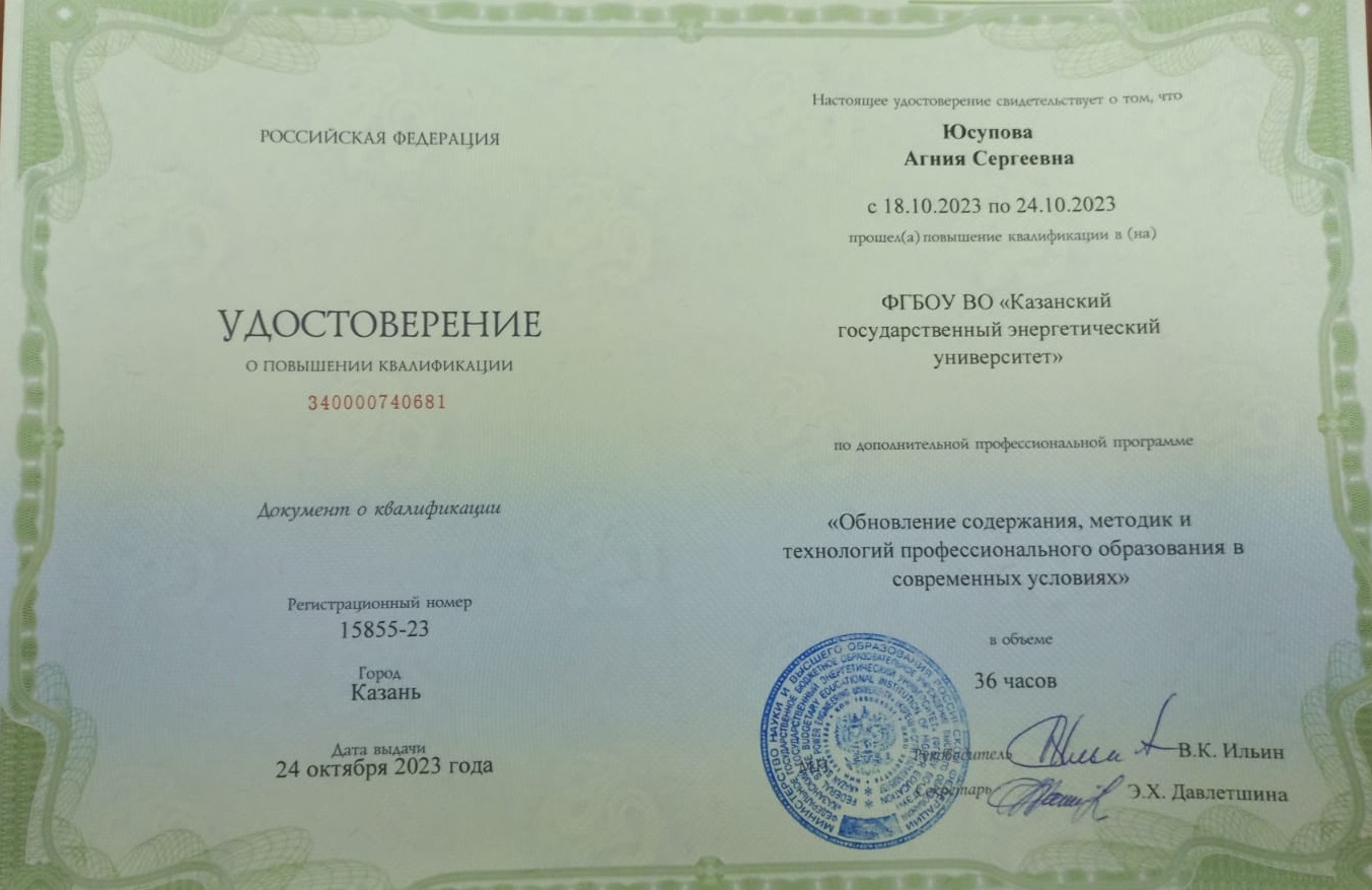 дополнительная профессиональная программа "Обновление содержания, методик и технологий профессионального образования в современных условиях" |