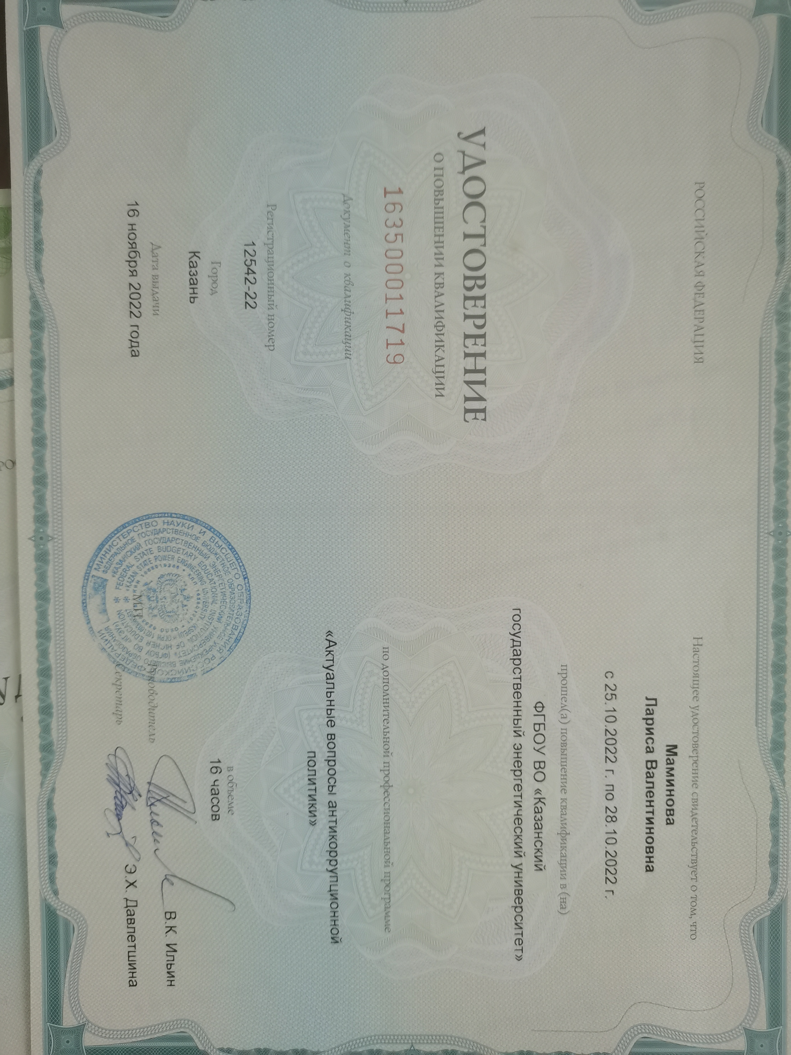 ФГБОУ ВО "Казанский государственный энергетический университет" Актуальные вопросы антикоррупционной политики 12542-22 16.11.2022 16