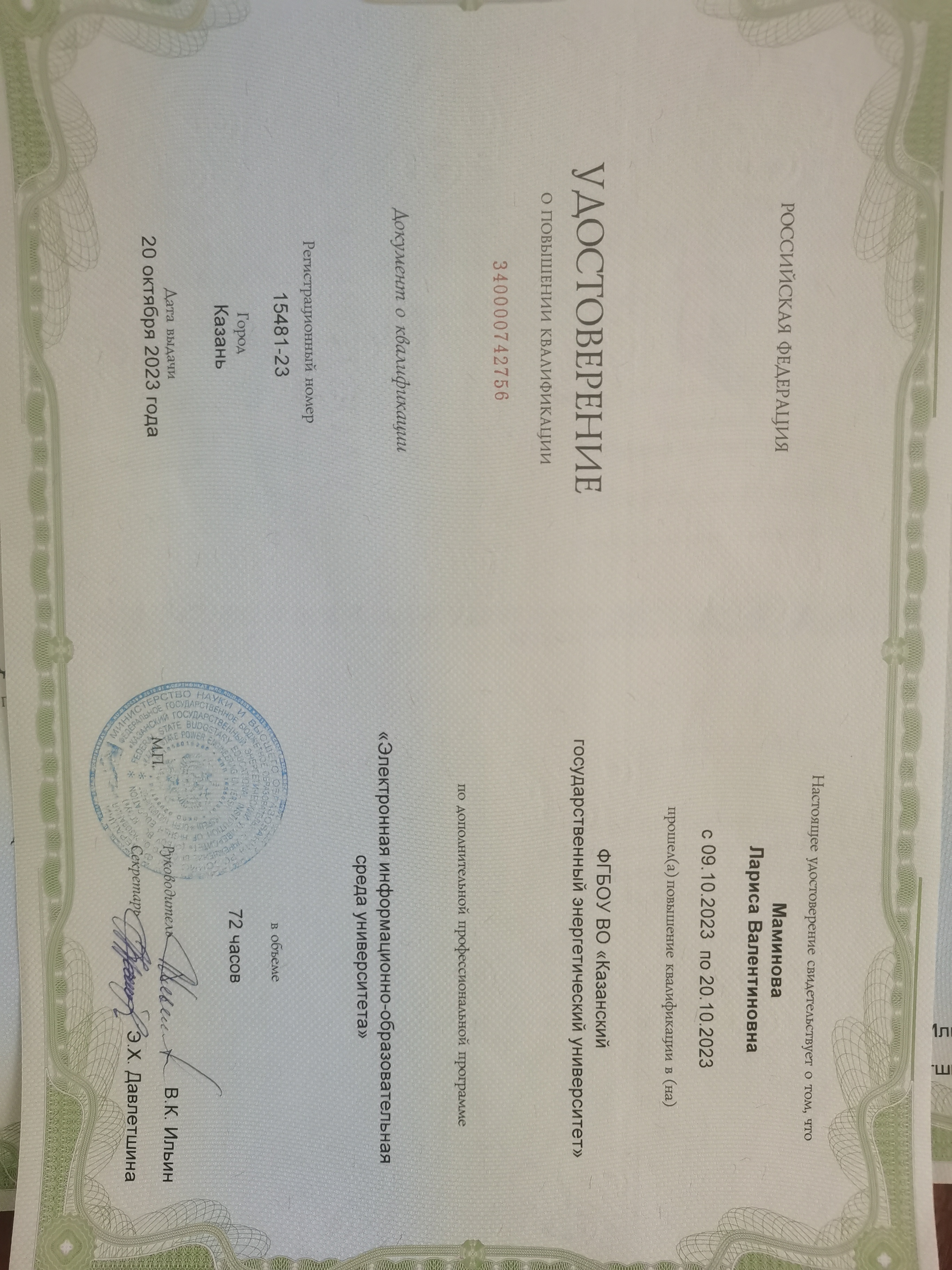 ФГБОУ ВО "Казанский государственный энергетический университет" Электронная информационно-образовательная среда университета 15481-23 20.10.2023 72