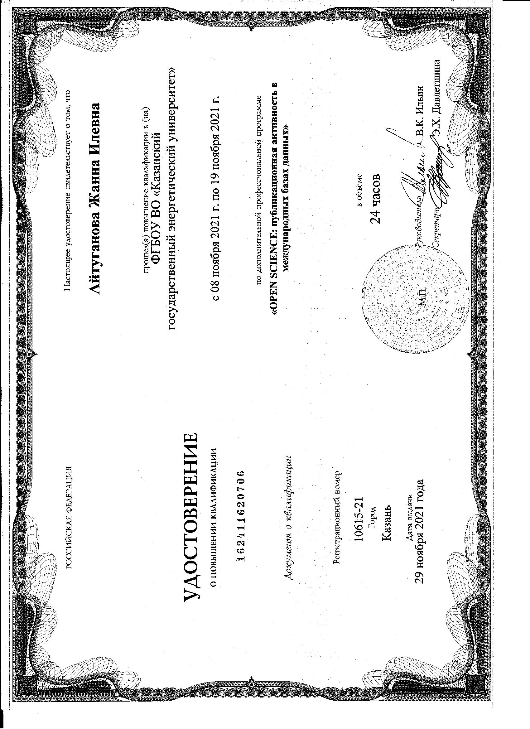 ФГБОУ ВО КГЭУ Повышение квалификации по программе "Open Science:современные практики, информационные ресурсы и инструменты публикационной активности и грантовой деятельности преподавателя" 14598-23 02.10.2023