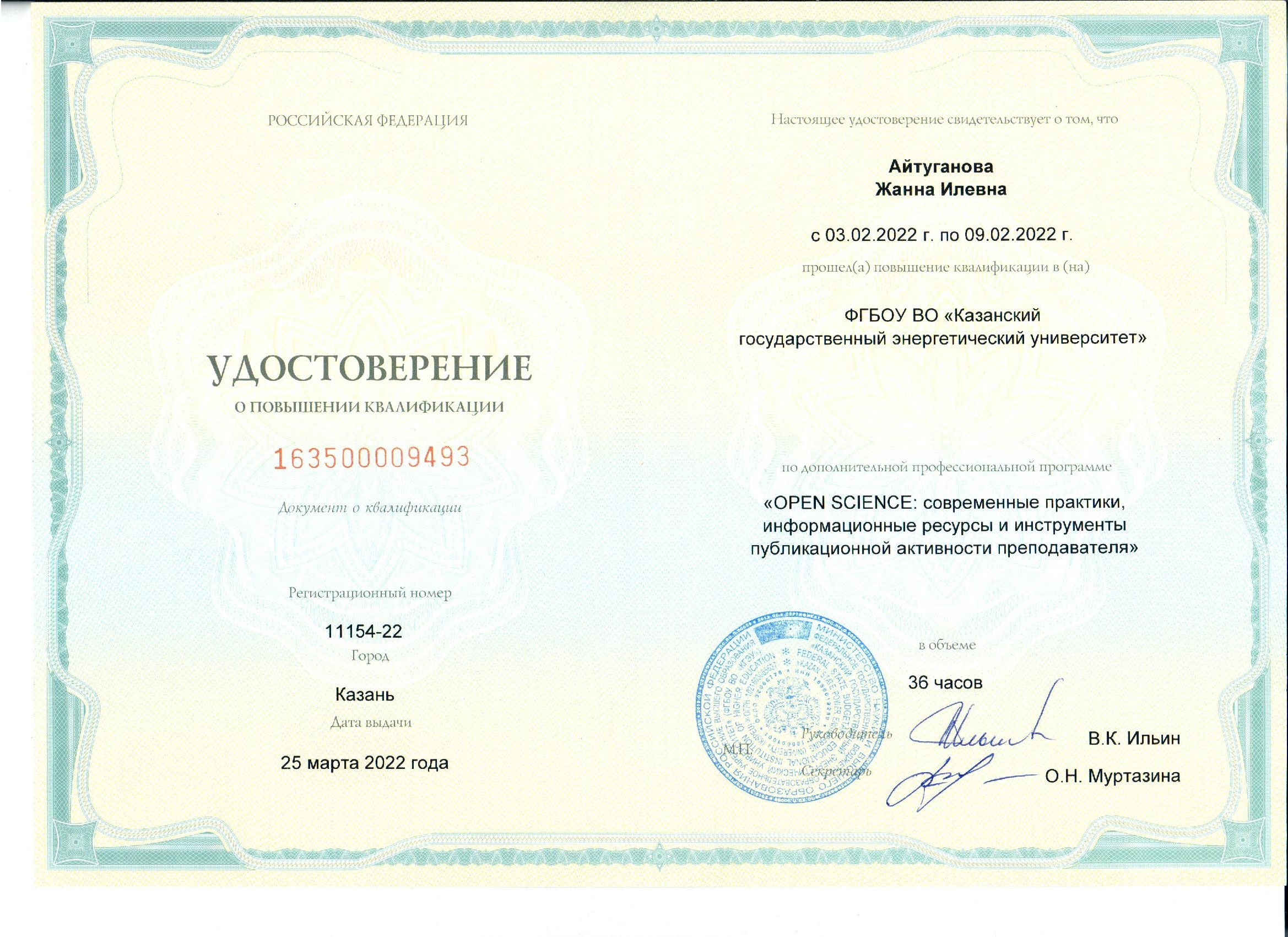 ФГБОУ ВО КГЭУ ''OPEN SCIENCE; современные практики, информационные ресурсы и инструменты публикационной активности преподавателя" 163500009493 25.03.2022 36
