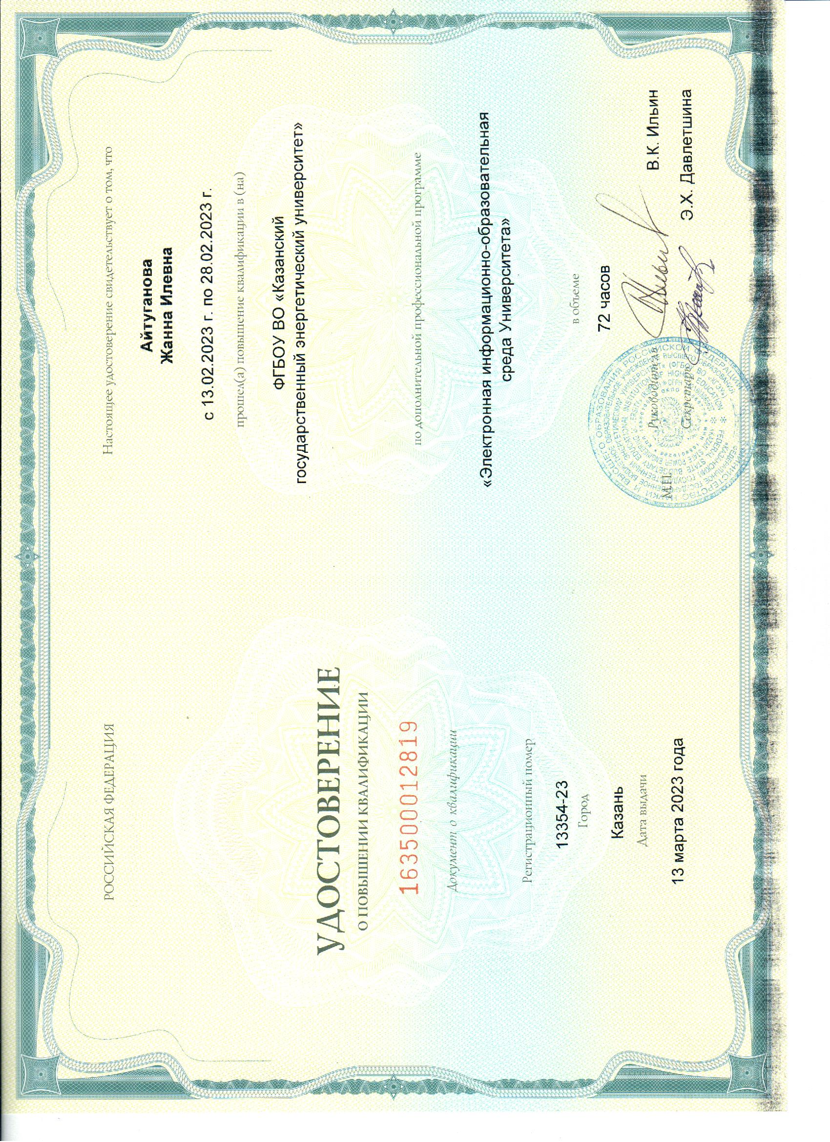 ФГБОУ ВО КГЭУ Электронная информационно-образовательная среда Университета 163500012819 13.03.2023 72