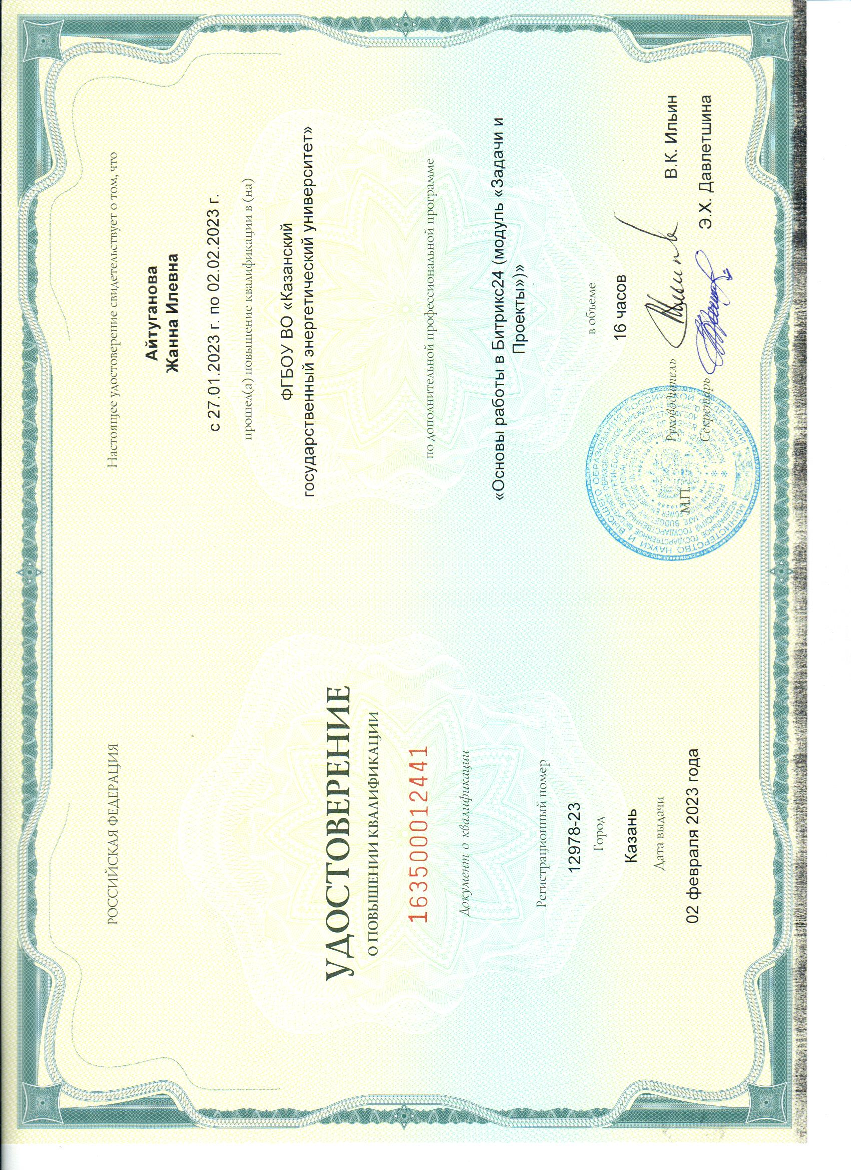 ФГБОУ ВО КГЭУ Основы работы в Битрикс24 163500012441 02.02.2023 16