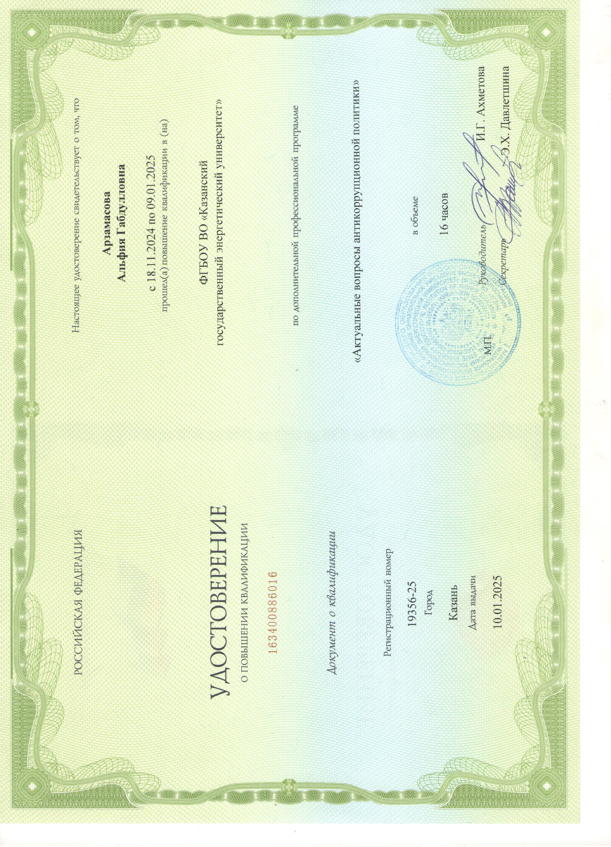 ФГБОУ ВО "КГЭУ" Актуальные вопросы антикоррупционной политики 19356-25 10.01.2025 16