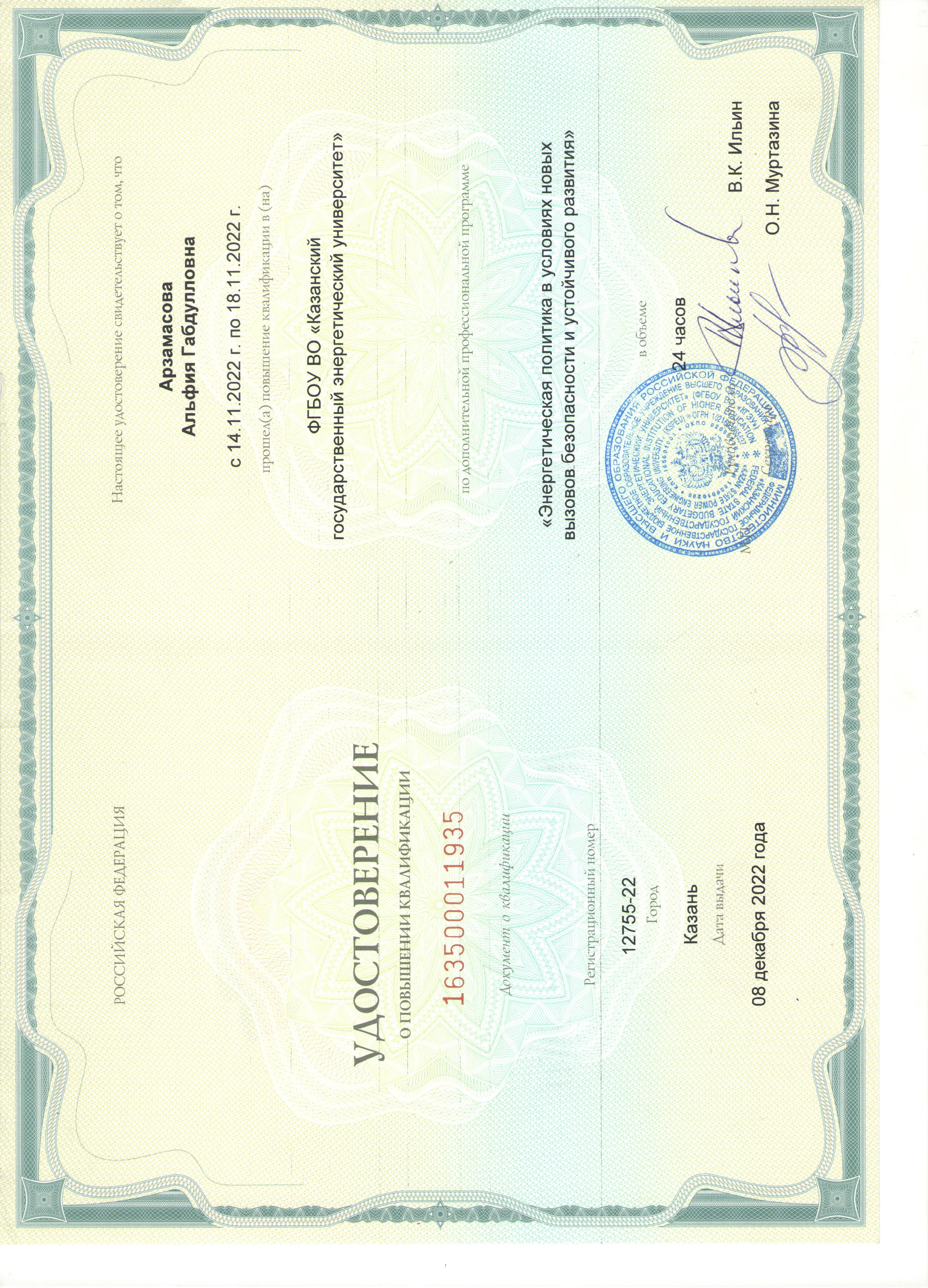 ФГБОУ ВО "КГЭУ" Энергетическая политика в условиях новых вызовов безопасности и устойчивого развития 163500011935 08.12.2022 24