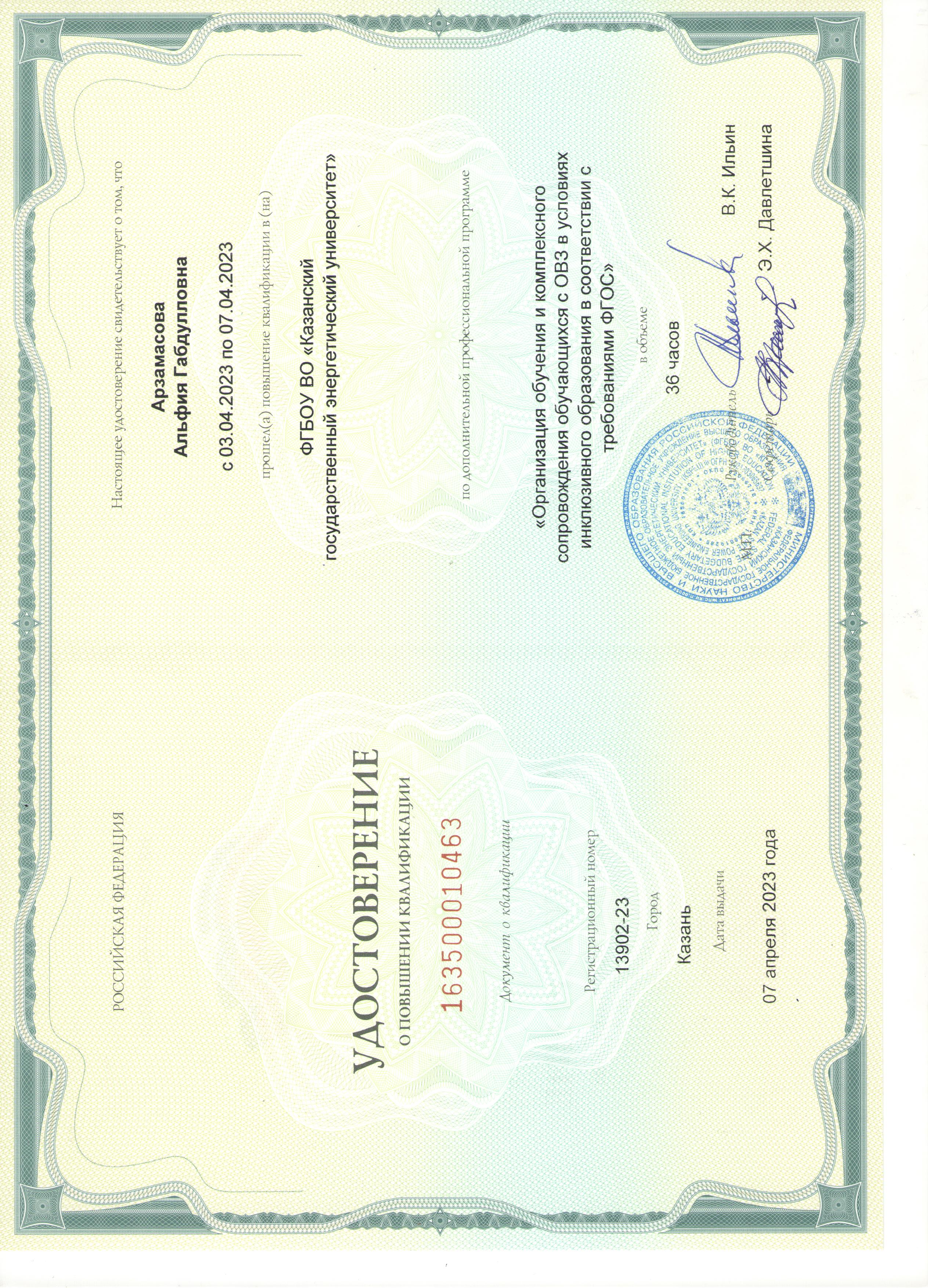 ФГБОУ ВО КГЭУ Организация обучения и комплексного сопровождения обучающихся с ОВЗ в условиях инклюзивного образования в соответствии с требованиями ФГОС 13902-23 07.04.2023 36