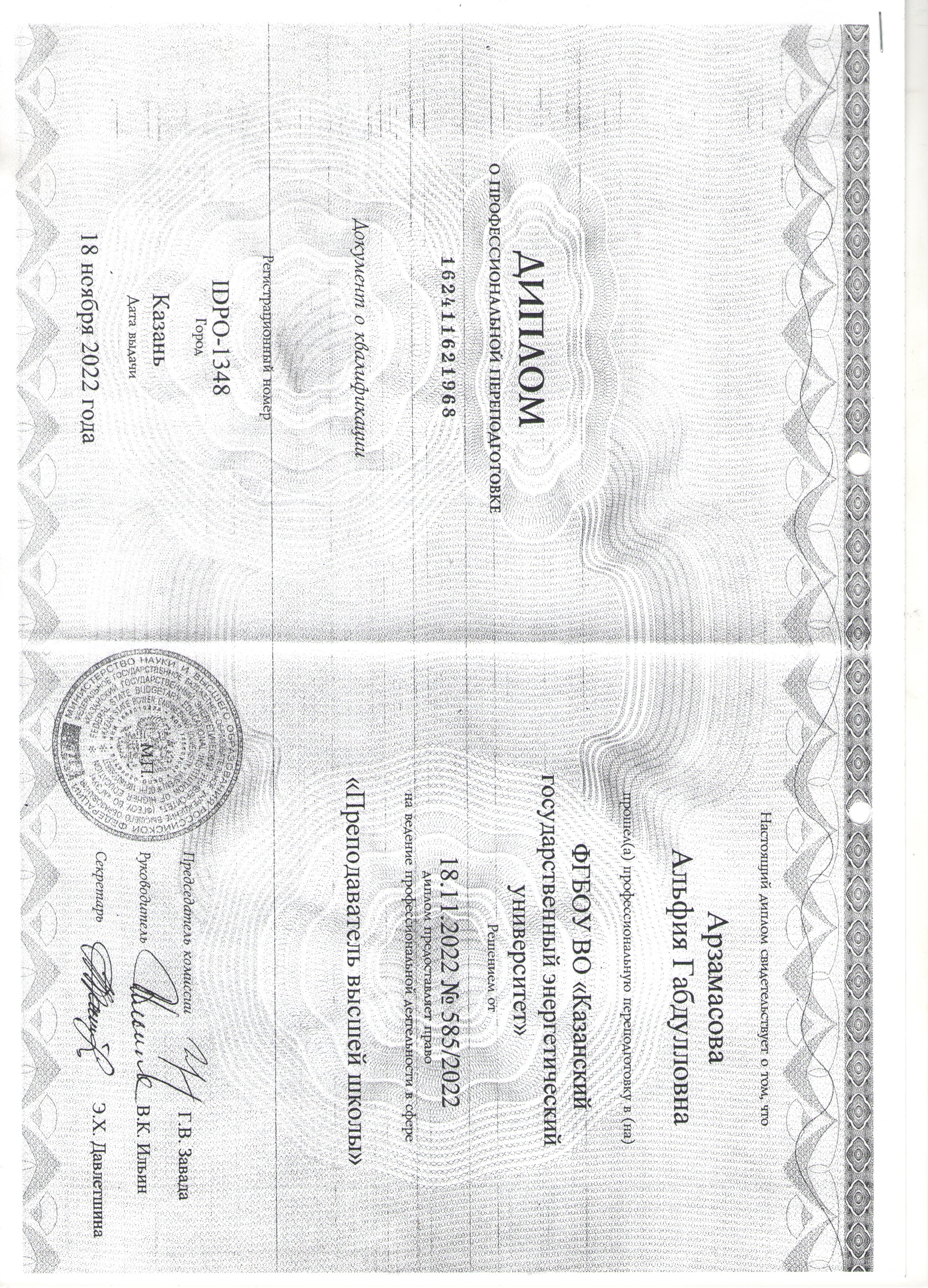 ФГБОУ ВО КГЭУ Преподаватель высшей школы IDPO-1348 18.11.2022 252