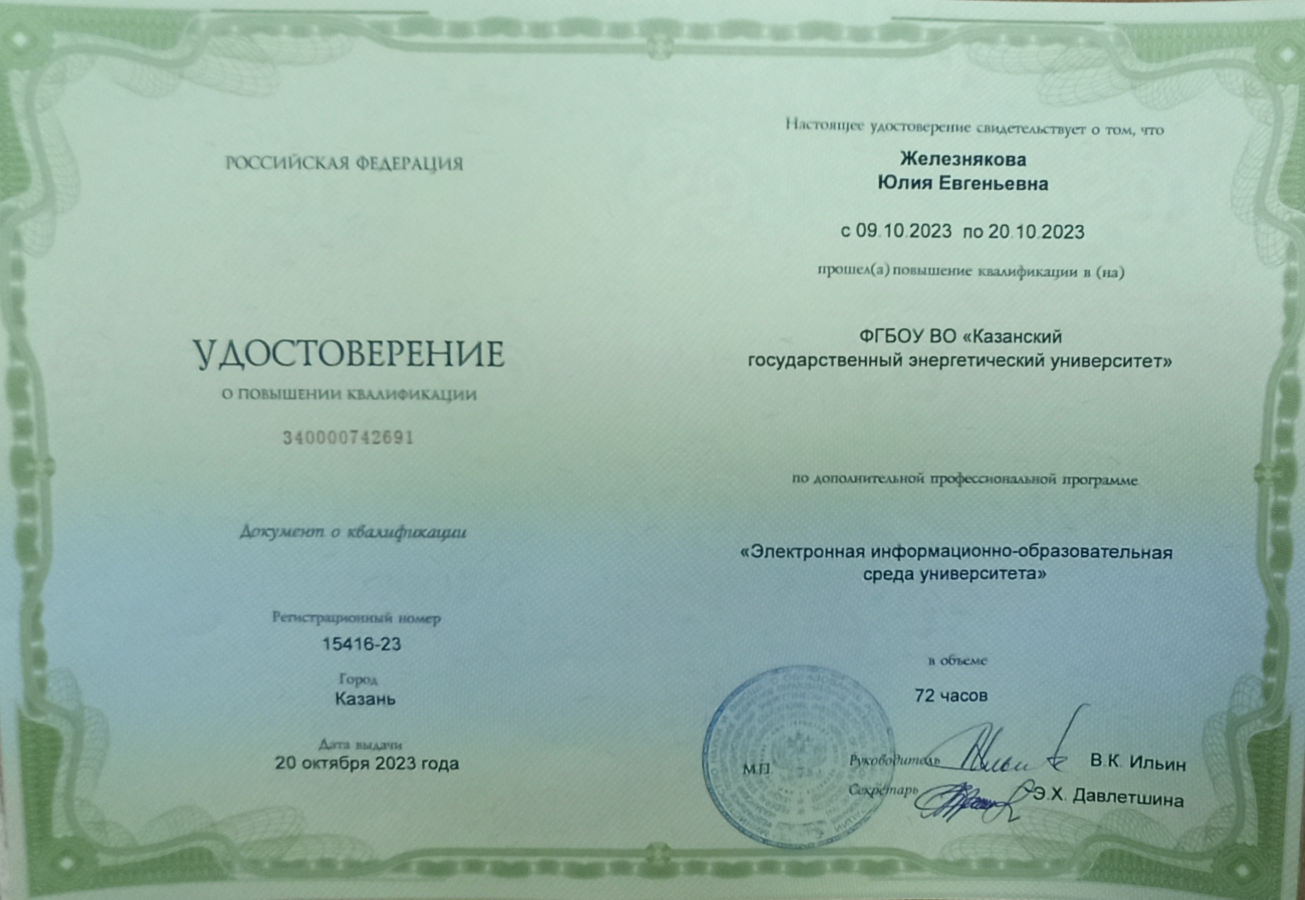 Железнякова Ю.Е. ИСПОЛЬЗОВАНИЕ ЭЛЕКТРОННОГО ОБУЧЕНИЯ, ДИСТАНЦИОННЫХ ОБРАЗОВАТЕЛЬНЫХ ТЕХНОЛОГИЙ ПРИ РЕАЛИЗАЦИИ ОБРАЗОВАТЕЛЬНОЙ ПРОГРАММЫ «ДОКУМЕНТОВЕДЕНИЕ И ДОКУМЕНТАЦИОННОЕ ОБЕСПЕЧЕНИЕ УПРАВЛЕНИЯ» В КАЗАНСКОМ ГОСУДАРСТВЕННОМ ЭНЕРГЕТИЧЕСКОМ УНИВЕРСИТЕТЕ // Документация в информационном обществе: информационные технологии и управление документами в условиях глобальных вызовов. ДОКЛАДЫ И СООБЩЕНИЯ XXVII МЕЖДУНАРОДНОЙ НАУЧНО-ПРАКТИЧЕСКОЙ КОНФЕРЕНЦИИ. Москва, 2021. С. 400-408 |
