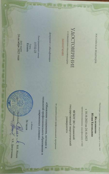 Железнякова Ю.Е., Двоеносова Г.А. Работа с документами как компонент профессиональных компетенций и трудовых функций инженера-энергетика. // Вестник Казанского государственного энергетического университета. 2014. Спецвыпуск (№22).С.92-100. |
