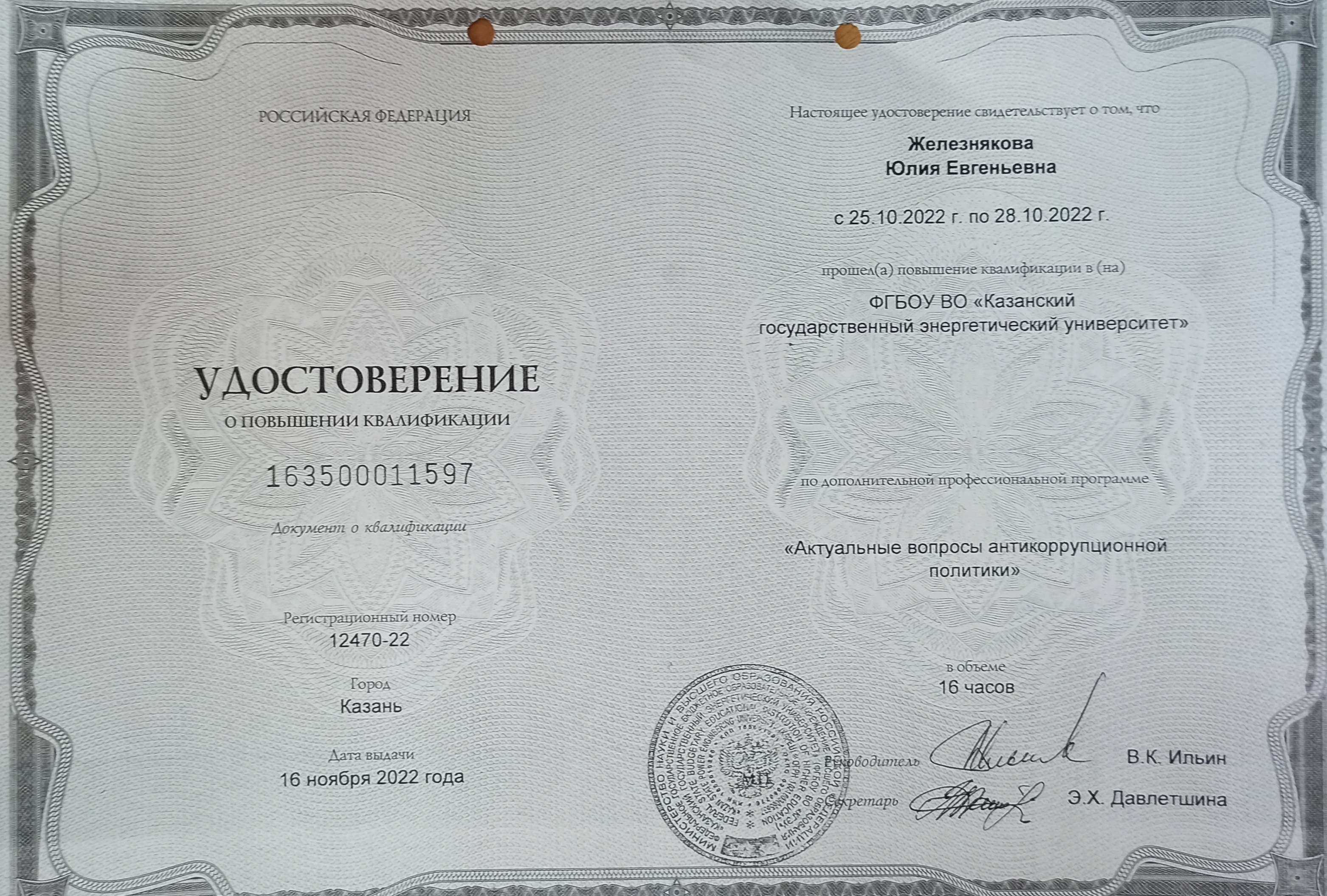 Железнякова Ю.Е. Необходимость изучения дисциплины «Документационное обеспечение управления» в процессе подготовки и повышении квалификации кадров энергетической отрасли. //Вестник Казанского государственного энергетического университета. 2014. №2. С.156-163. |