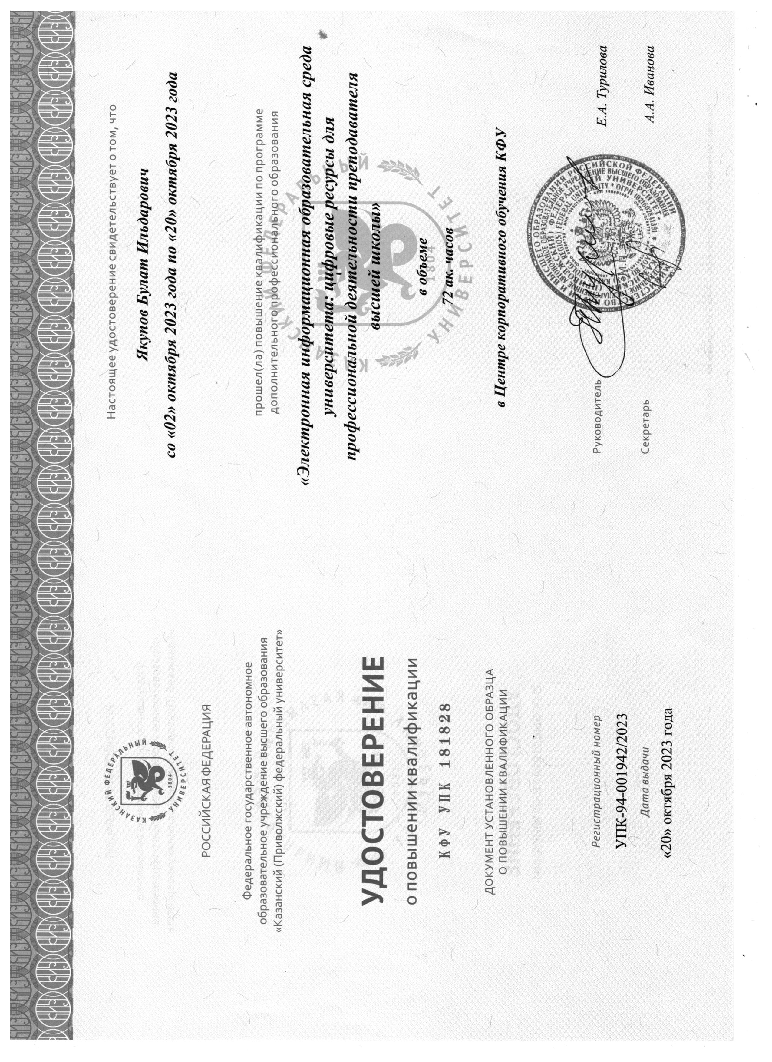 ФГАОУ ВО "Казанский (Приволжский) федеральный университет" Электронная информационная образовательная среда университета: цифровые ресурсы для профессиональной деятельности преподавателя высшей школы 181828 УПК-94-001942/2023 20.10.2023 72