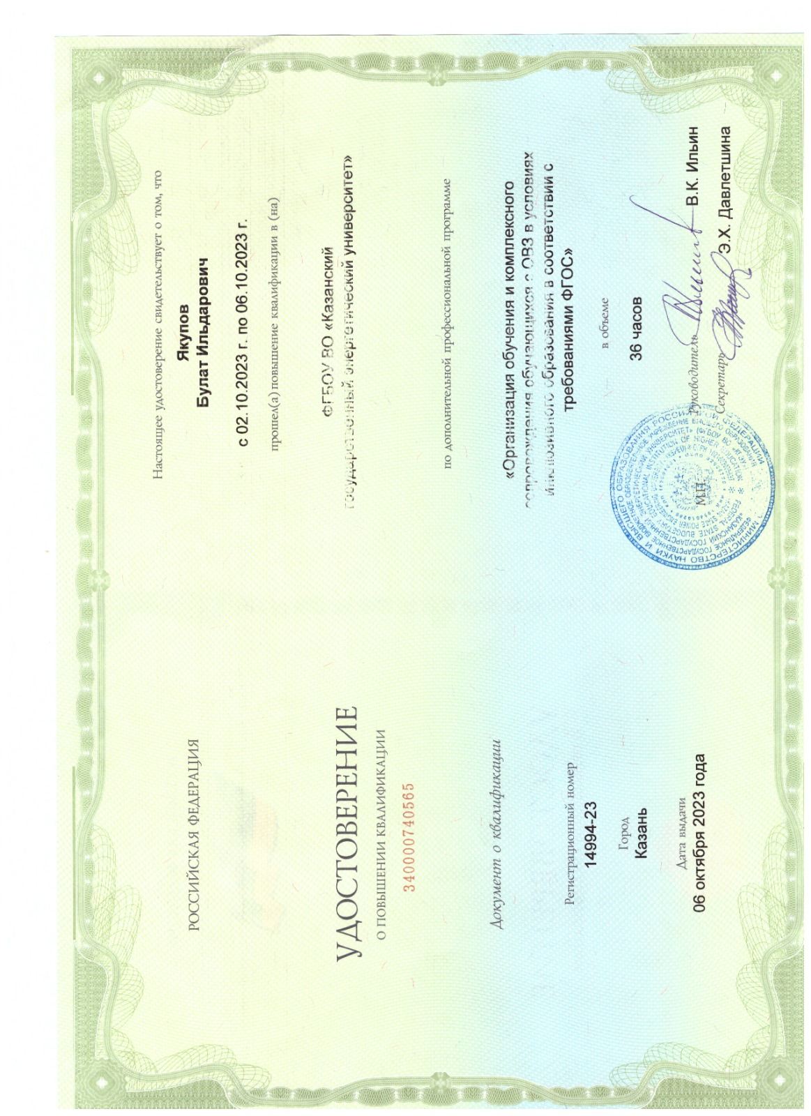 ФГБОУ ВО "Казанский государственный энергетический университет" Организация обучения и комплексного сопровождения обучающихся с ОВЗ в условиях инклюзивного образования в соответствии с требованиями ФГОС 340000740565 14994-23 06.10.2023 36