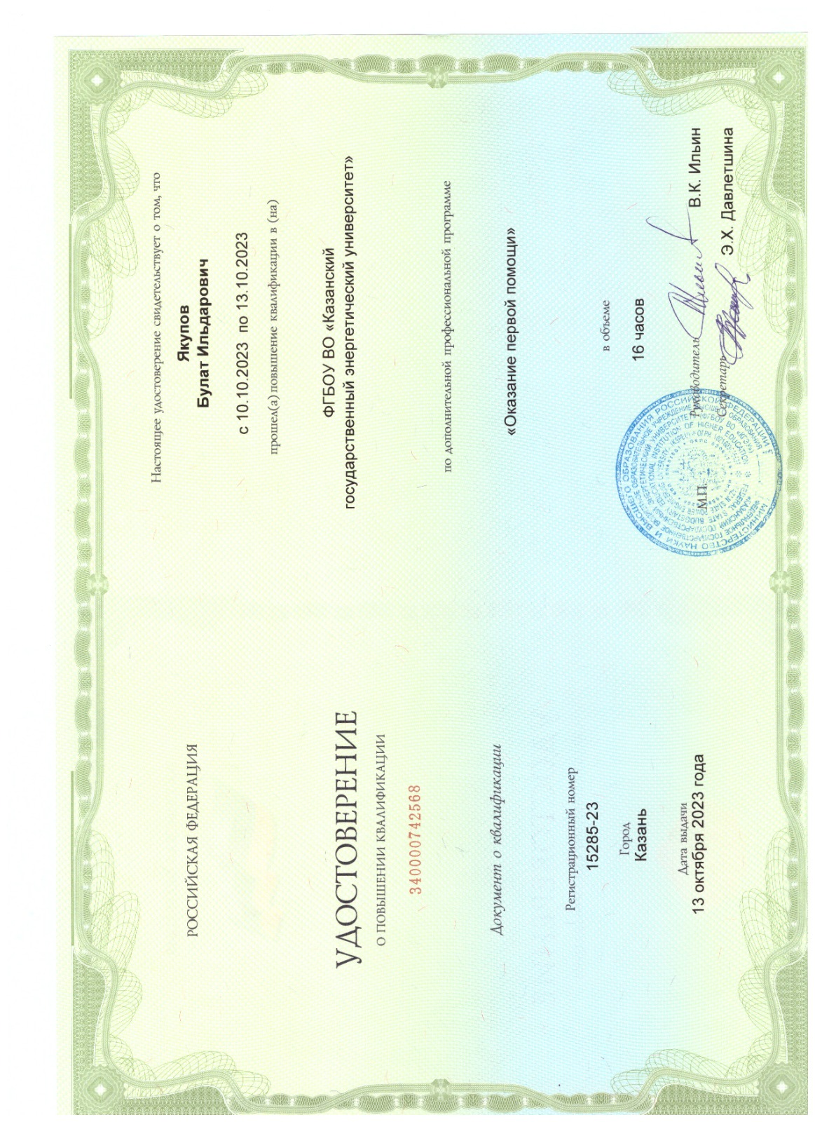 ФГБОУ ВО "Казанский государственный энергетический университет" Оказание первой помощи 340000742568 15285-23 13.10.2023 16