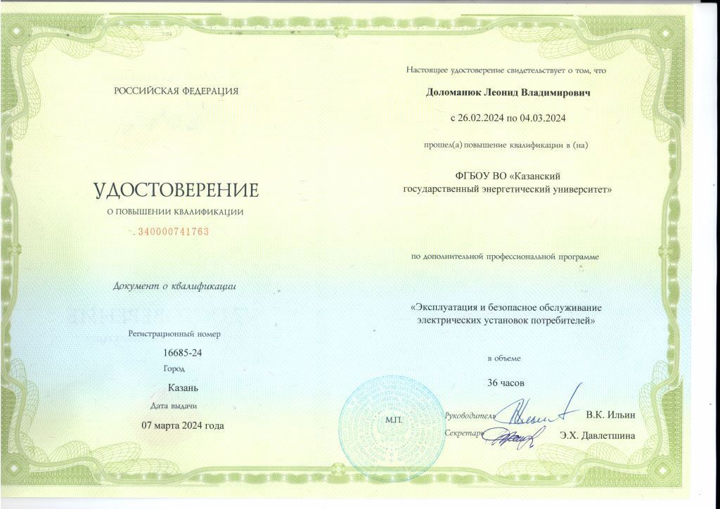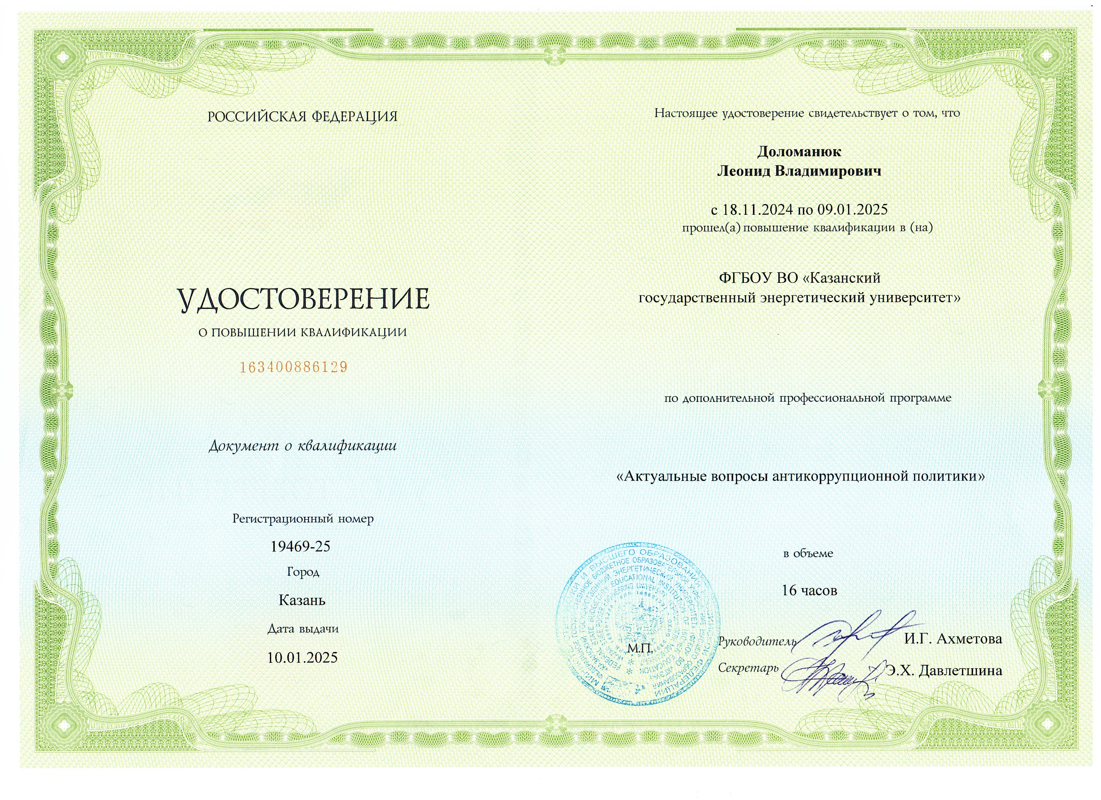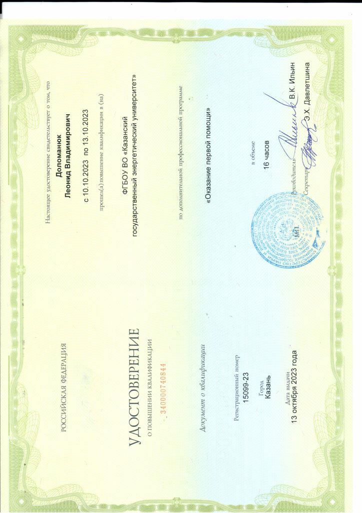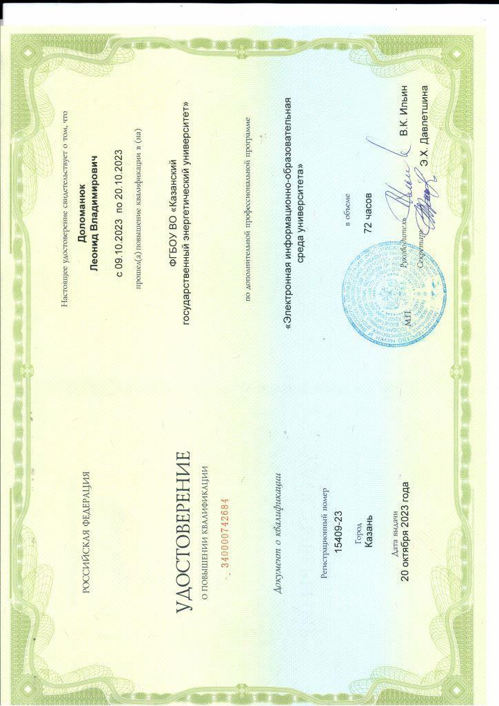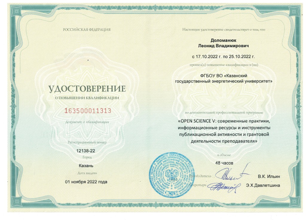 В 2001- 2003 гг. прошел профессиональную переподготовку в Центре подготовки и повышения квалификации преподавателей вузов КГТУ (КХТИ) - преподаватель высшей школы.