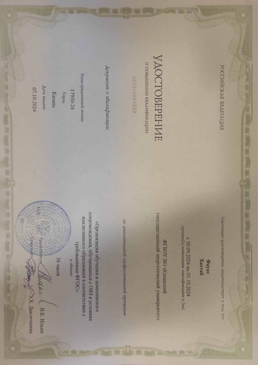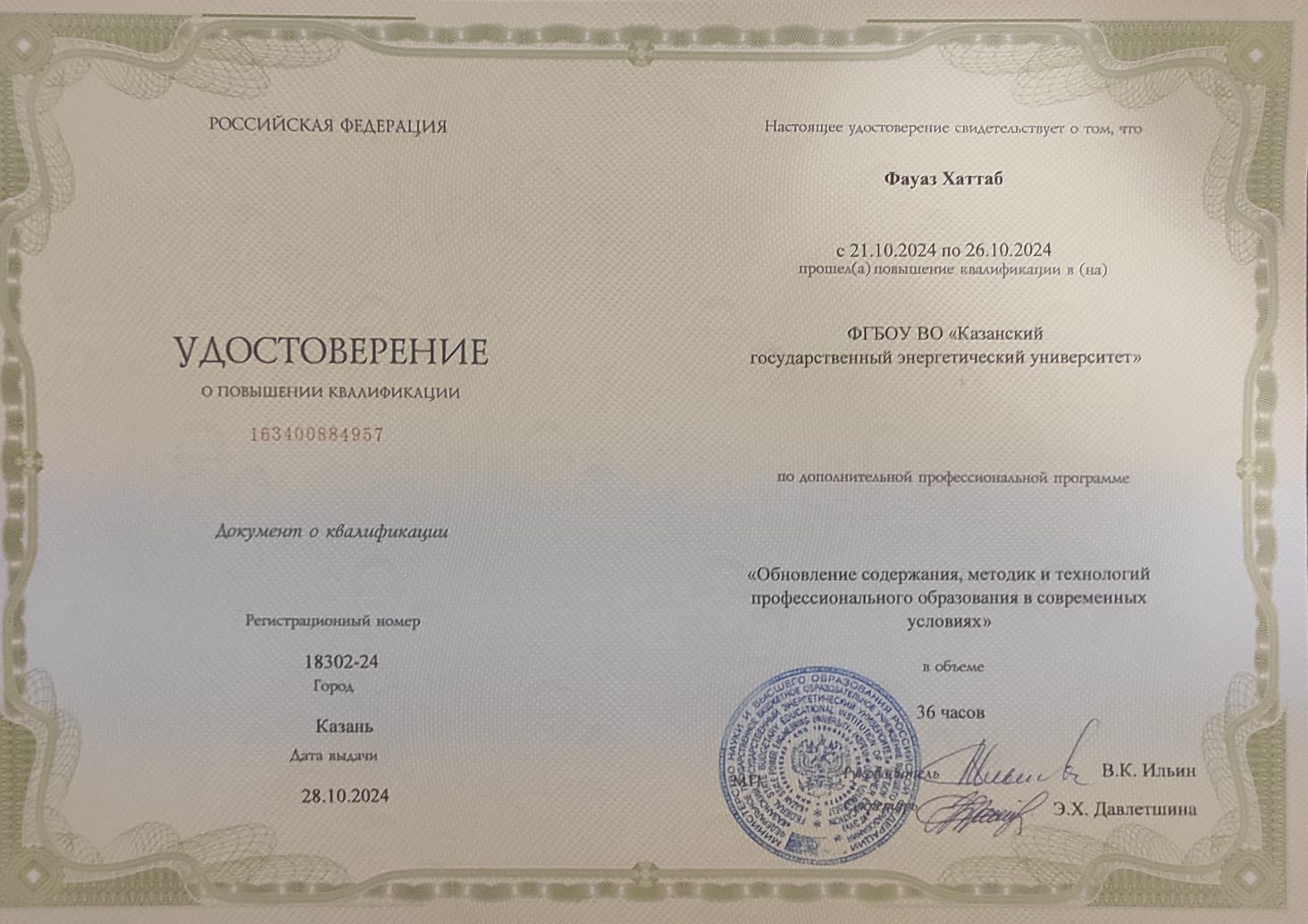 Диплом о профессиональной переподготовке (Преподаватель высшей школы) |