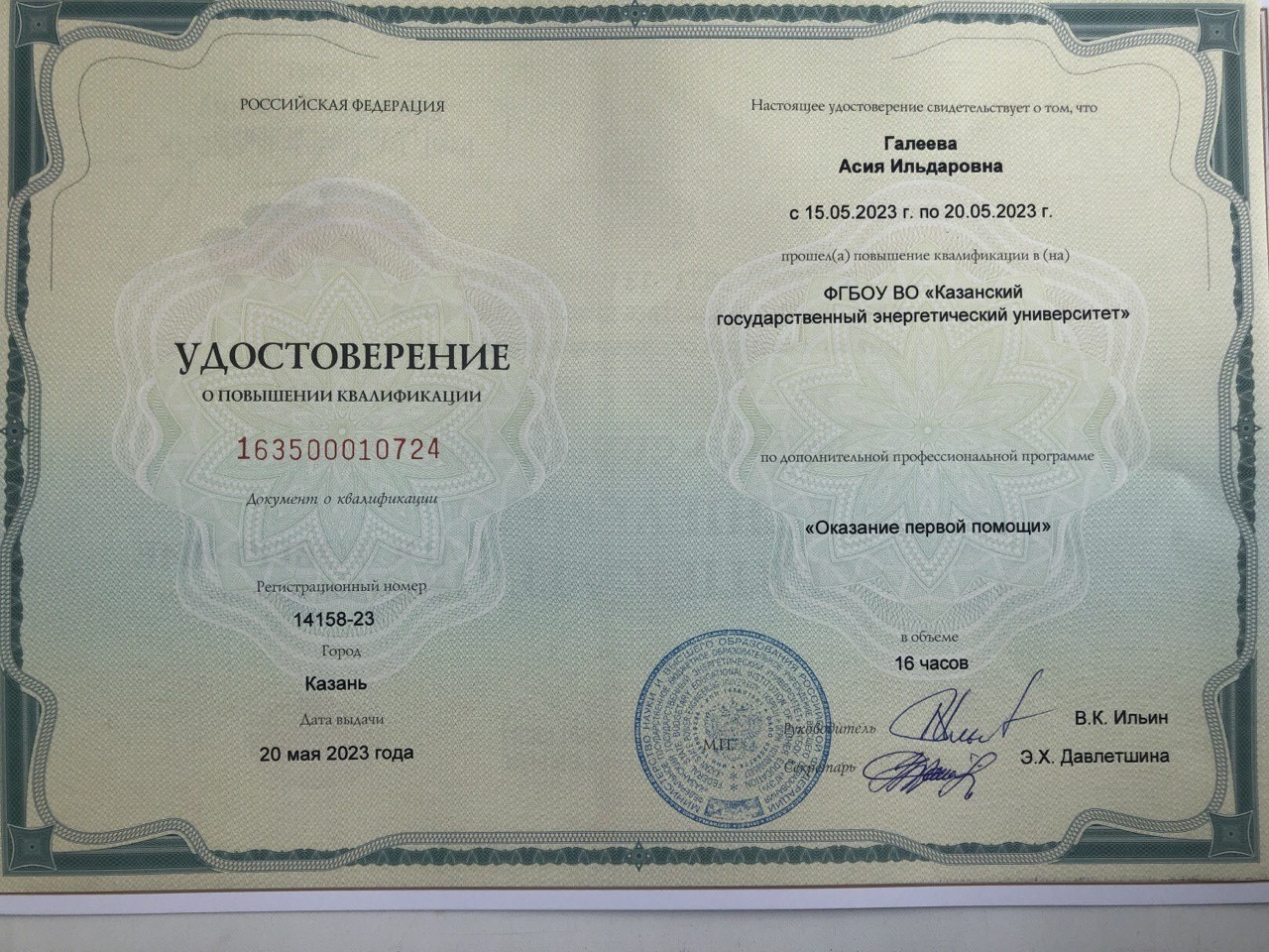 ФГБОУ ВО "Казанский государственный энергетический университет" Оказание первой помощи 163500010724 20.05.2023 16