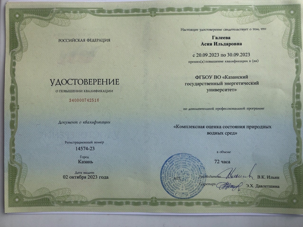 ФГБОУ ВО "Казанский государственный энергетический университет" Комплексная оценка состояния природных водных сред 340000742516 02.10.2023 72