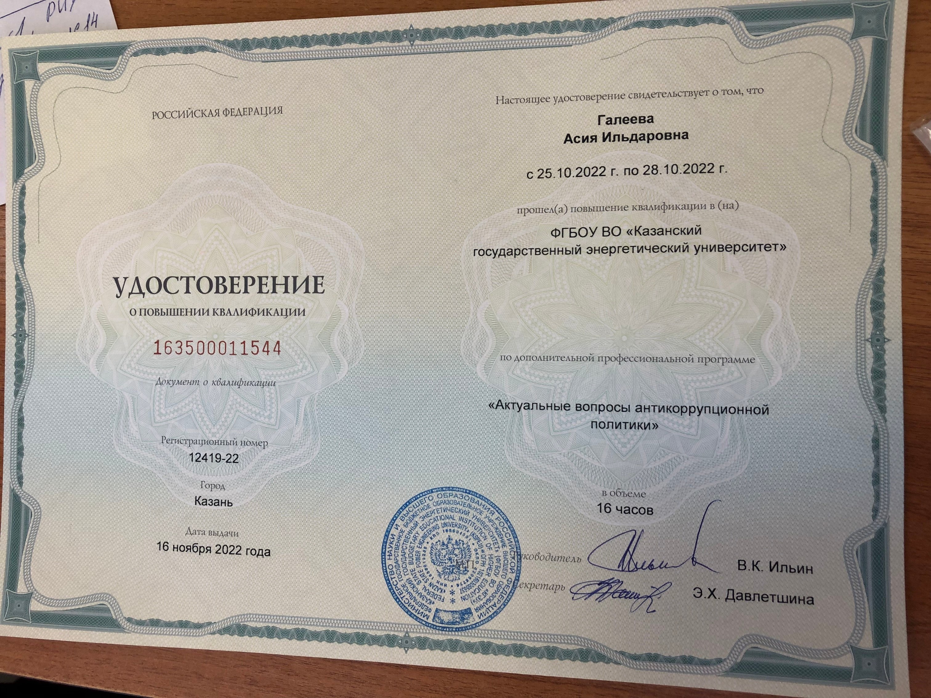 ФГБОУ ВО "Казанский государственный энергетический университет" Актуальные вопросы антикоррупционной деятельности 163500011544 16.11.2022 16