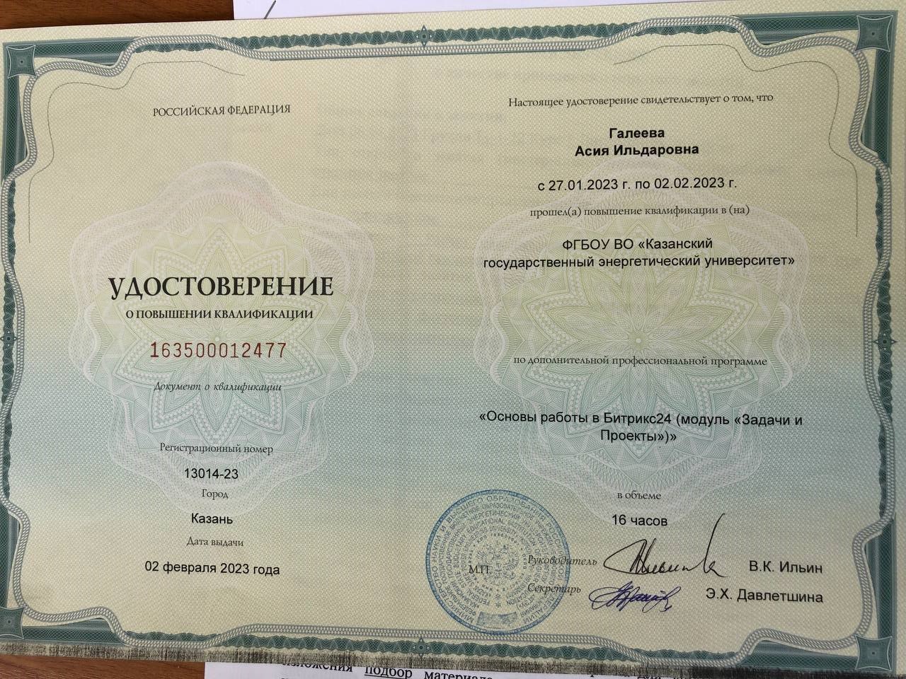 ФГБОУ ВО "Казанский государственный энергетический университет" Основные работы в Битрикс 24 (модуль "Задачи и Проекты") 163500012477 02.02.2023 16