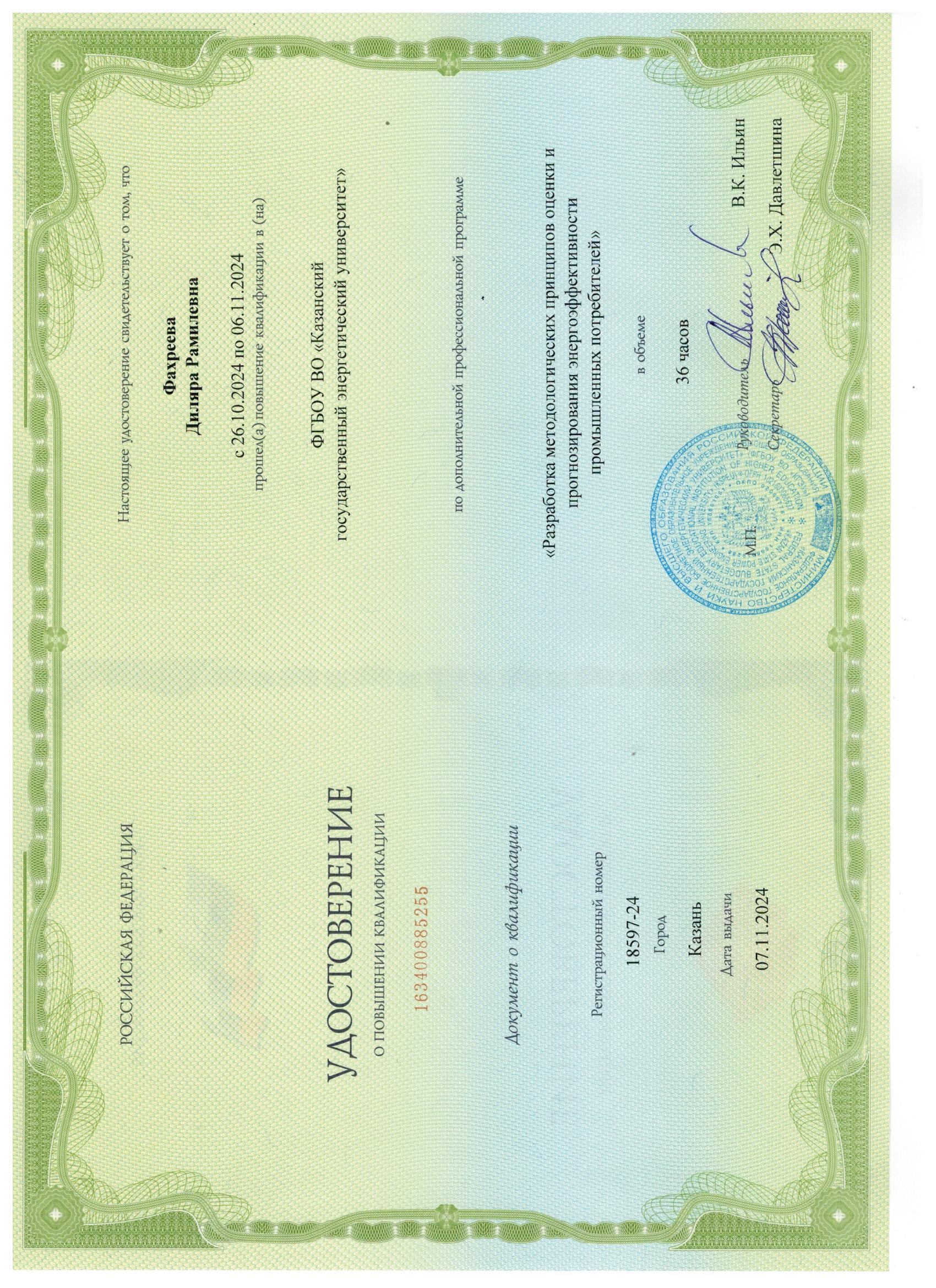 ФГБОУ ВО"КГЭУ" Разработка методологических принципов оценки и прогнозирования энергоэффективности промышленных потребителей 163400885255 07.11.2024 36