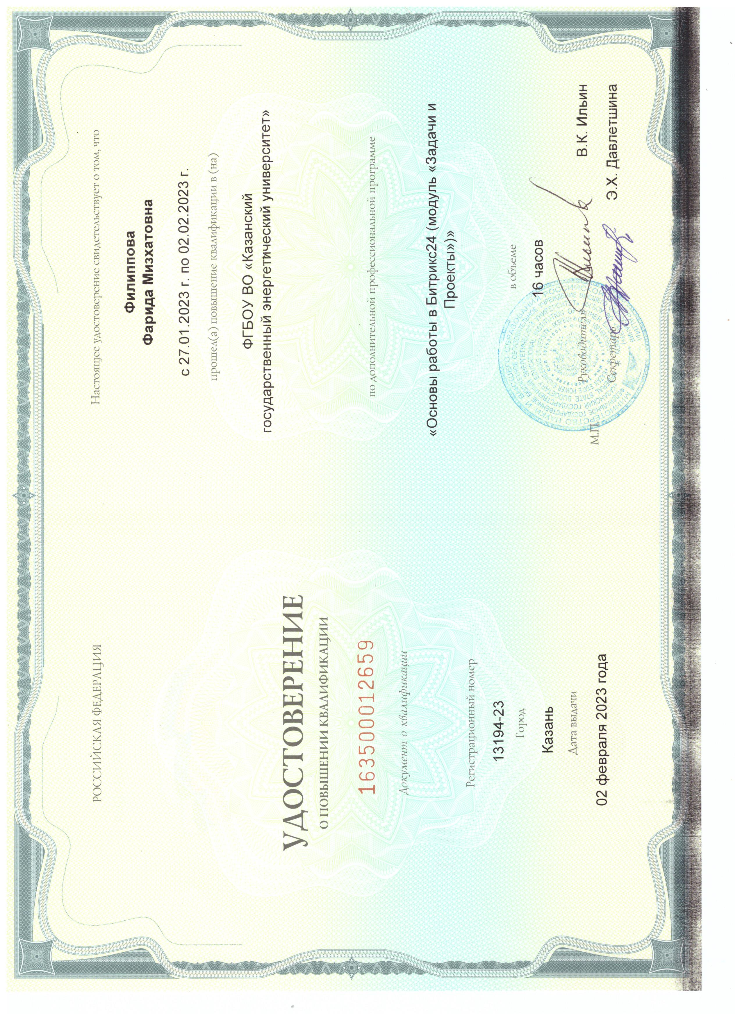 ФГБОУ ВО "КГЭУ" "Основы работы в Битрикс24 (модуль "Задачи ипроекты")" 163500012659 02.02.2023 16