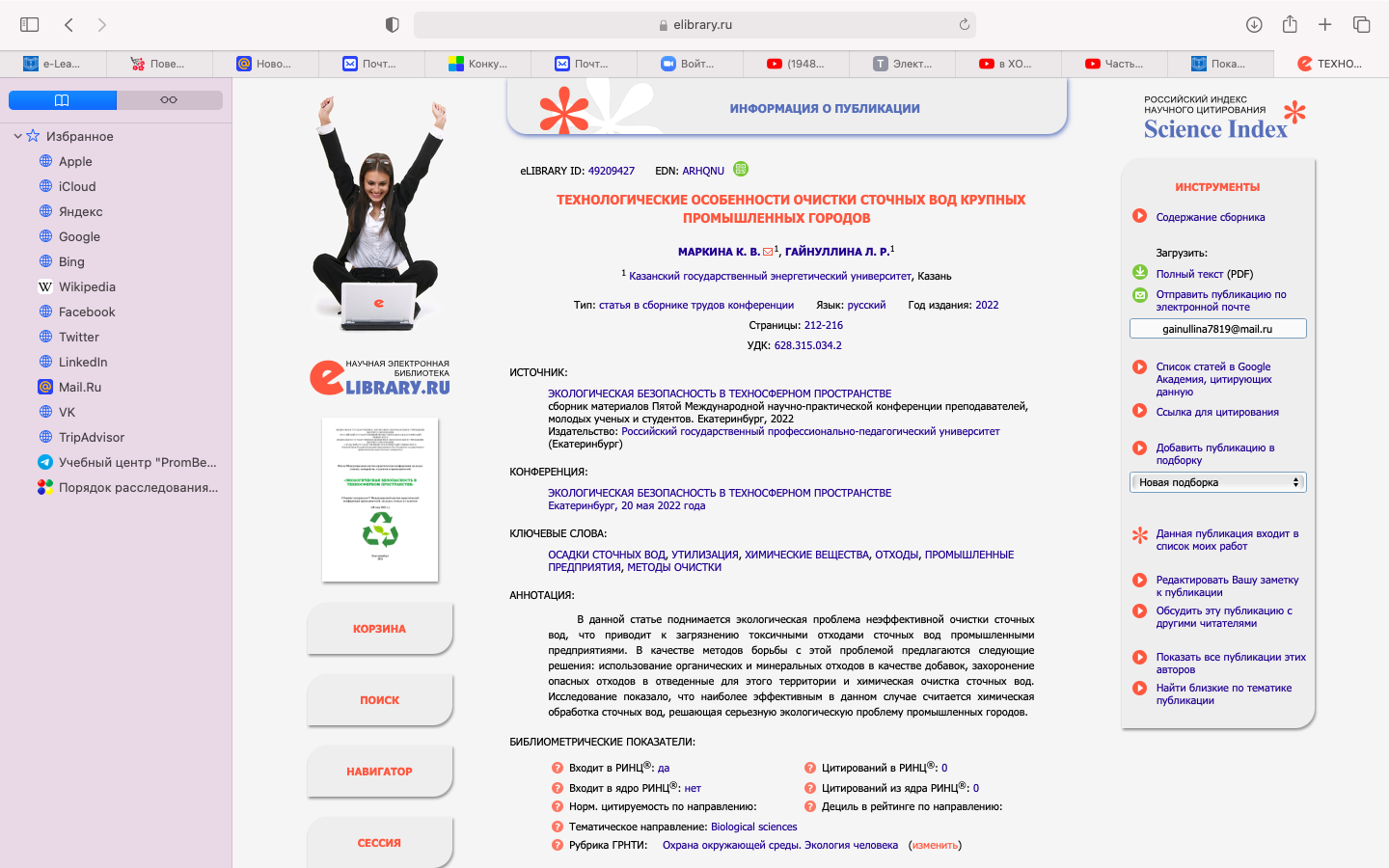 В сборнике: Экологическая безопасность в техносферном пространстве. сборник материалов Пятой Международной научно-практической конференции преподавателей, молодых ученых и студентов. Екатеринбург, 2022. С. 249-251. |