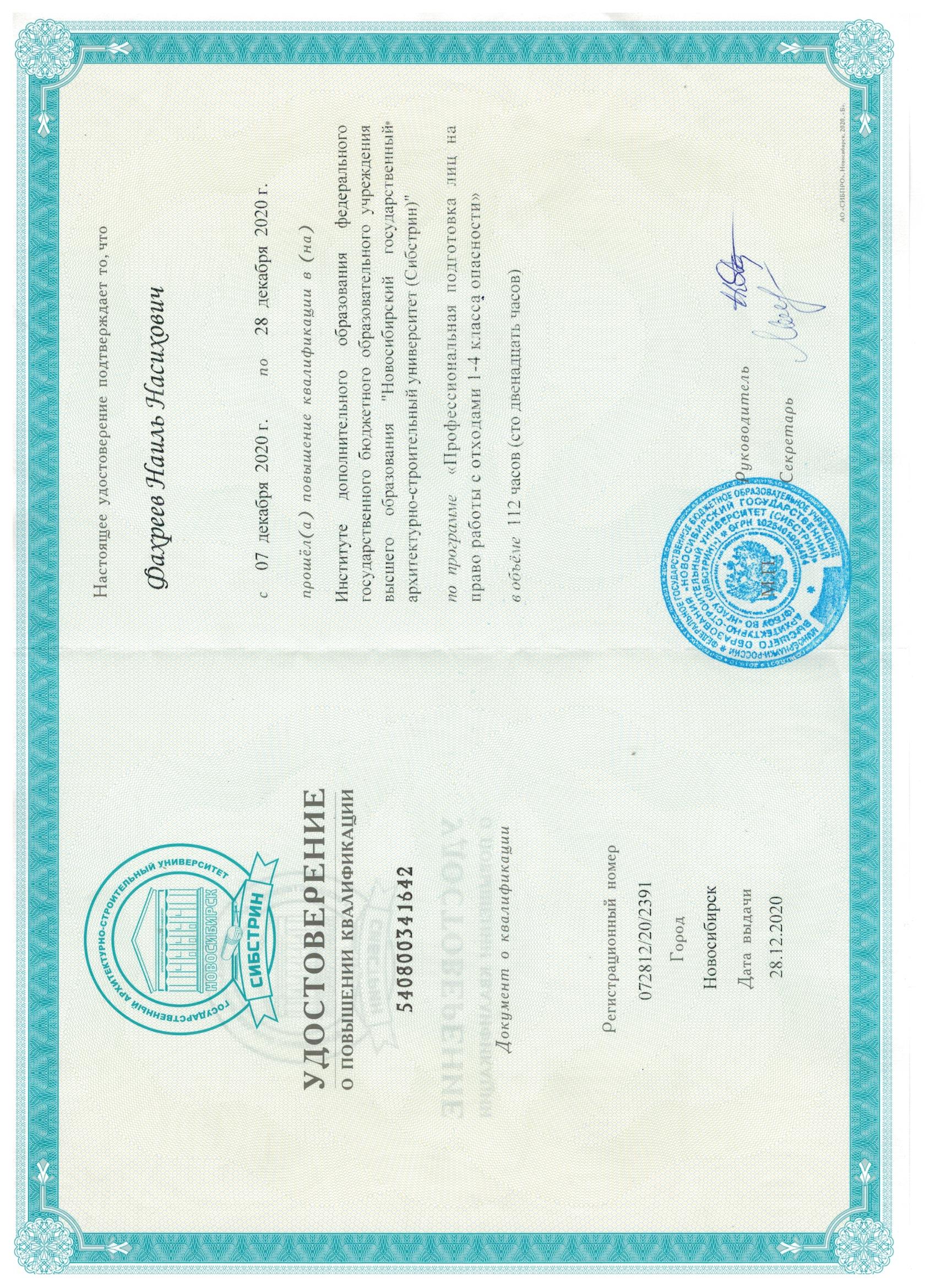 Профессиональная подготовка лиц на право обращения с отходами 1-4 класса опасности |
